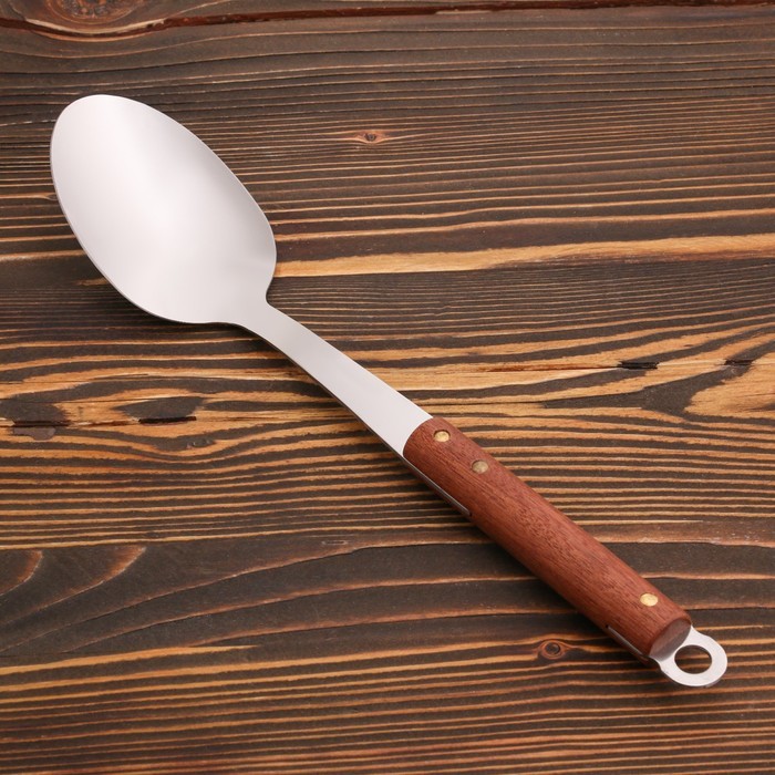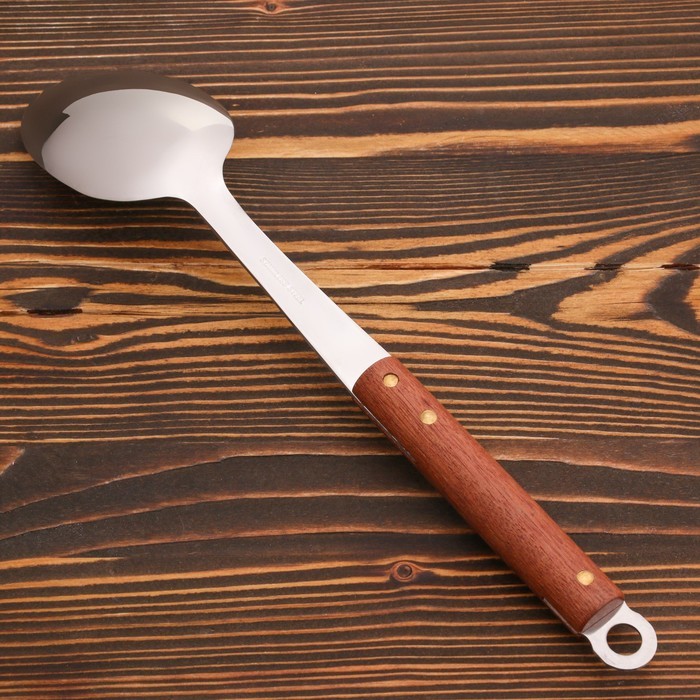 Ложка сервировочная с деревянной ручкой, длина 35 см, длина ручки 14.5 см, черпало 7?11 смВопросы по товару