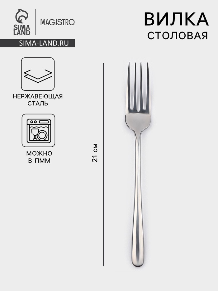 Вилка столовая Magistro «Джентри», h=21 см, нержавеющая сталь, серебристаяВопросы по товару