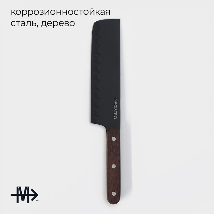 Нож Сантоку кухонный Magistro Dark wood, длина лезвия 17.8 смВопросы по товару