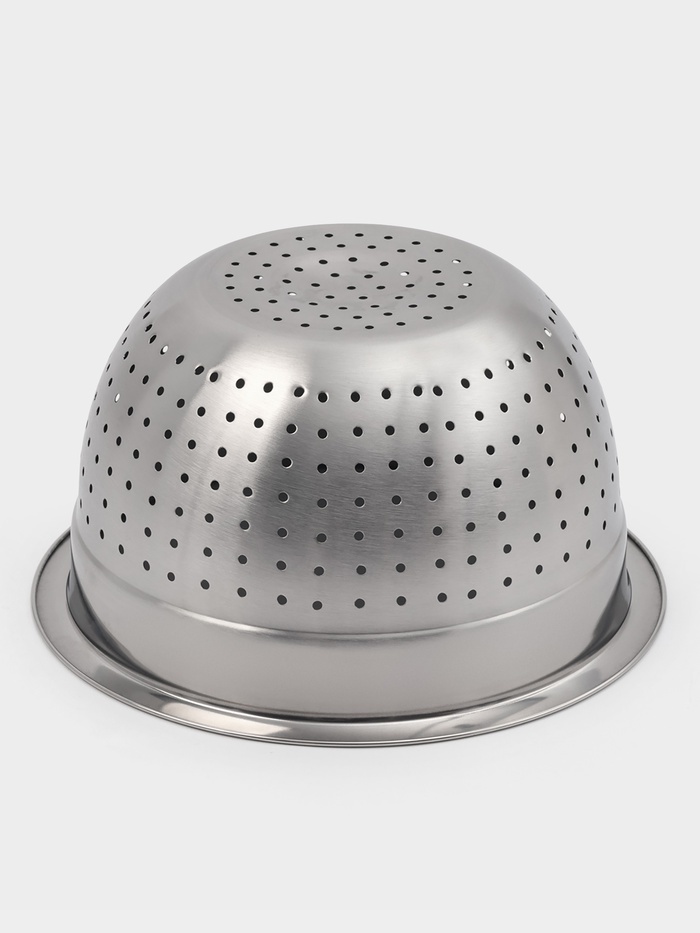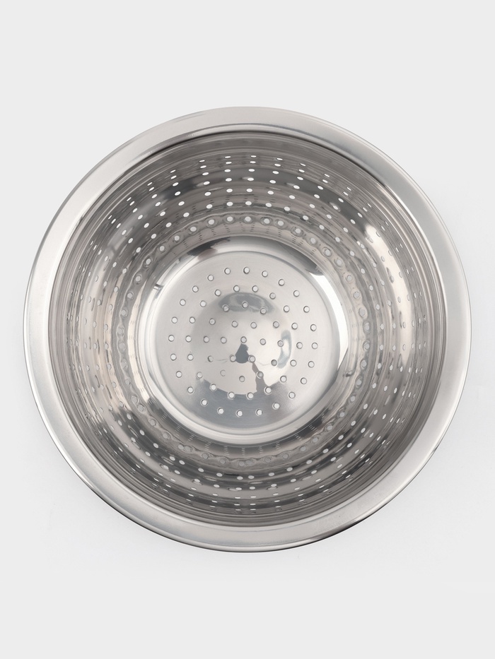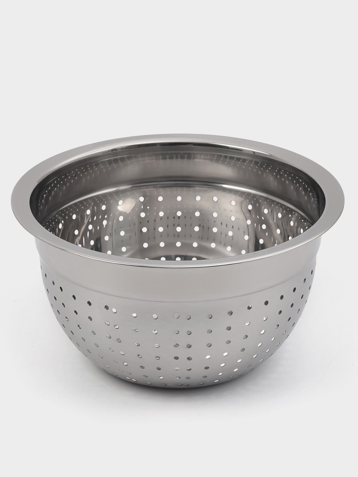 Дуршлаг — незаменимый помощник на кухне, имеет вид кастрюли с отверстиями. В основном он применяется для: * промывания овощей и фруктов; * сливания макарон и круп. Дуршлаг изготовлен из качественной н... Показать описаниеержавеющей стали. Его легко мыть: как вручную, так и в посудомоечной машине.