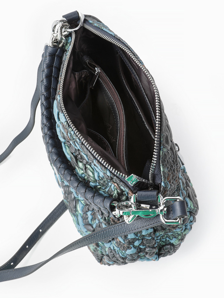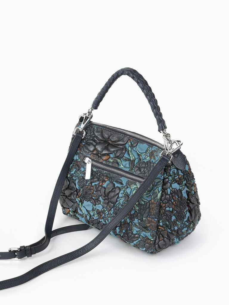 Кросс-боди от Alessandro Beato из натуральной кожи букле синего цвета с цветочным принтом Длина сумки Алессандро Беато (Alessandro Beato) - 27 см, ширина по дну - 15 см, высота - 24 см, общая высота -... Показать описание 35 см. Сумка выполнена из буклированной кожи - хит продаж этого и прошлых сезонов, закрывается на молнию. Внутри центральное отделение на молнии, сбоку карман на молнии, карманы для мелочей. Снаружи сзади карман на молнии. Сумка носится в руке или через плечо. Длина ремешка регулируется. Лёгкая и комфортная модель!