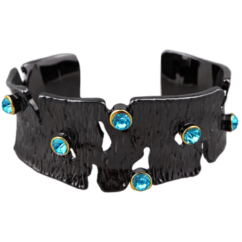 Изготовлено из ювелирного сплава на основе латуни с гальваническим покрытием черным родием. Изделие украшают голубые кристаллы. Ширина браслета 2.5см.