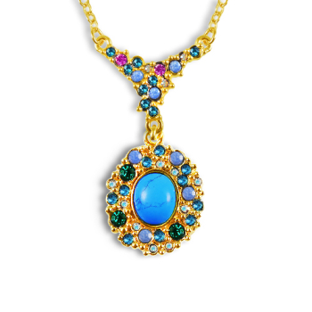 Изготовлено из ювелирного сплава на основе латуни с гальваническим покрытием золотом. Изделие украшает муранское стекло синего цвета. Длина колье 45см. Замок-якорь.