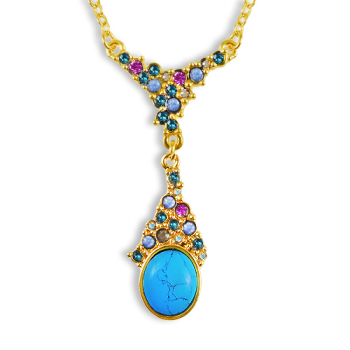 Колье (смола голубая, серая; покрытие: родий)