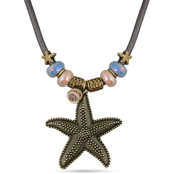 Изготовлено из ювелирного сплава на основе латуни с гальваническим покрытием бронзой. Изделие украшает жемчуг Майорка разного цвета и ракушка. Длина темно-серого кожаного шнурка 45см. Шпрингельный зам... Показать описаниеок с удлинителем 5см. Размер кулона 7х6см.