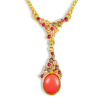 Колье (вставки: Текстиль красный; покрытие: Золото)JHN9729 Вопросы по товару