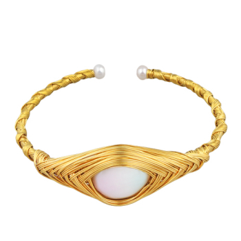 Браслет (жемчуг белый; покрытие золото)