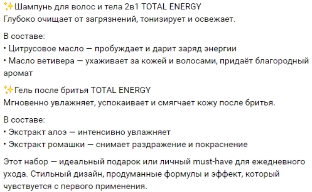 Мужской набор для ухода за лицом, телом и волосами «TOTAL ENERGY» Вопросы по товару
