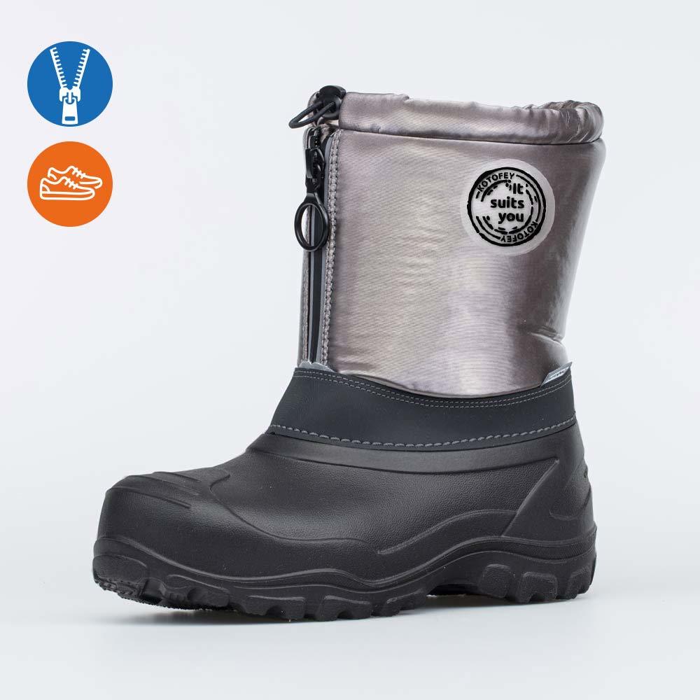 Описание Описание модели Детские сапожки из группы SNOW&RAIN сочетают в себе достоинства резинового сапога и утепленной обуви и идеально подходят для ранней весны и поздней осени. Материал верха – спе... Показать описаниециальный текстиль на основе нейлона, защищающий от ветра, грязи и брызг. Водонепроницаемая галоша из лёгкого материала ЭВА обеспечивает защиту от влаги. Внутри вкладной чулок из шерстяного меха. Он надежно сохраняет тепло, отводит от стоп влагу, дарит уют. При необходимости его можно вынуть и проветрить. Молния обеспечивает хорошую раскрываемость детской обуви – ребенку легко обуваться и разуваться. Сверху голенище затягивается на кулиску, защищающую от попадания снега внутрь. Сапожки оснащены светоотражающими элементами и декорированы нашивкой с надписью 1936 – год основания фабрики «Егорьевск-обувь». Модель анатомически правильная: имеет приподнятость в пяточной части и круглый носок. Сделано в России. Во избежание промокания обуви не рекомендуется наступать в лужу выше уровня галоши!