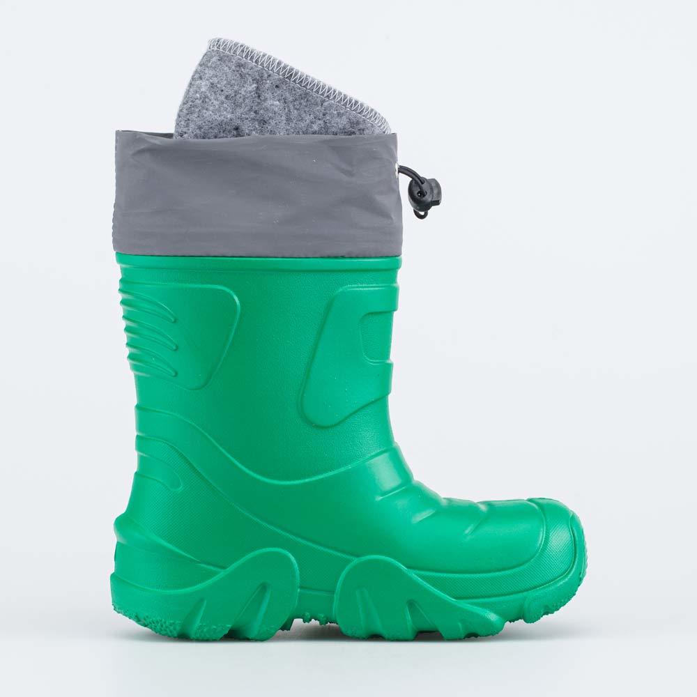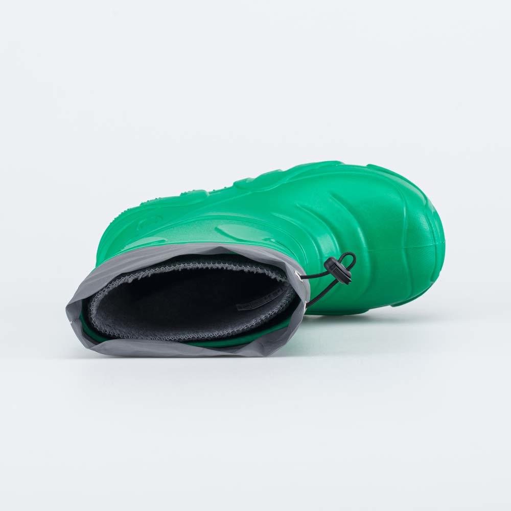 Описание Описание модели Детские утепленные сапожки из ЭВА выполнены в позитивном зеленом цвете. Имеют вкладной чулок и манжету для защиты от влаги. Вкладной чулок с пришитой войлочной стелькой состои... Показать описаниет из нескольких слоев: 1 - внутренний из хлопкового флиса впитывает избыток влаги; 2 - утеплитель из полиэстера отвечает за теплоизоляцию. Дополнительно в пяточной части имеется карман из искусственной кожи, который обеспечивает поддержку стопы и предохраняет материал от преждевременного истирания. Чулок можно вынуть и просушить на батарее, а также при необходимости постирать в стиральной машине. Верхний манжет из серебристого нейлона обладает светоотражающим эффектом, затягивается на шнурок с фиксатором и защищает от попадания воды внутрь обуви. Обувь предназначена для детей школьного возраста, поэтому особое внимание уделено правильной конструкции: более плотный материал в районе пятки для придания необходимой жесткости и анатомическая форма следа. Сделано в России.