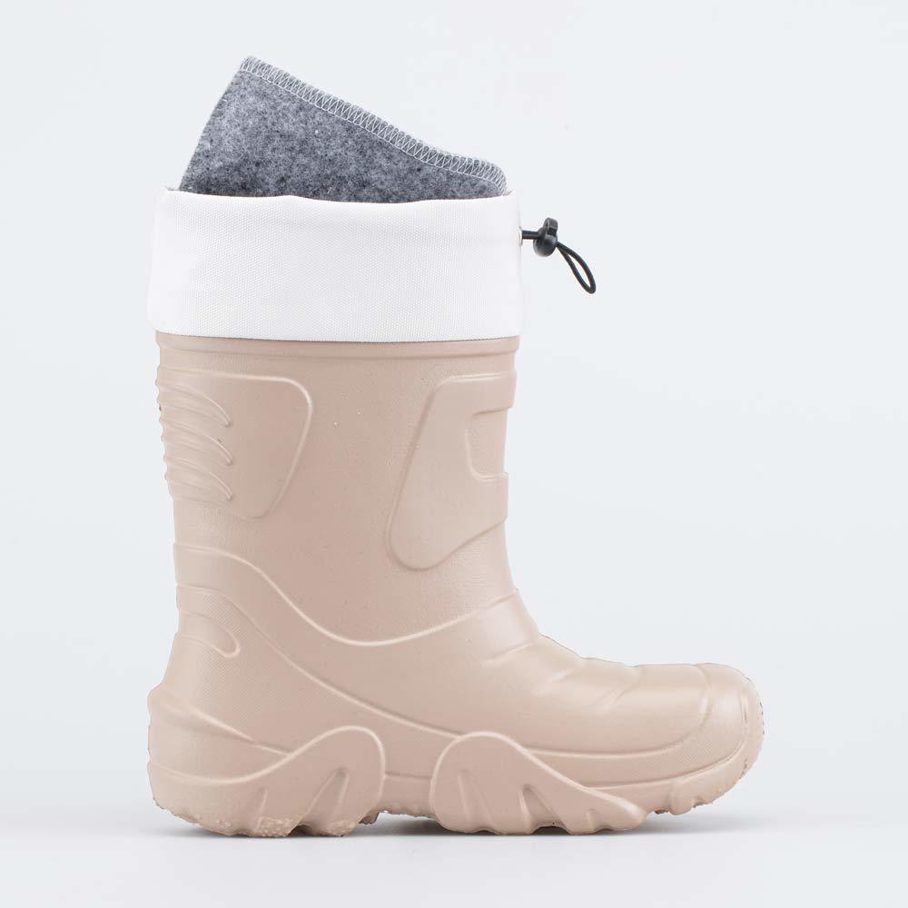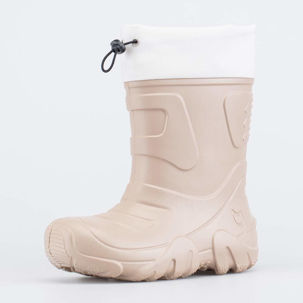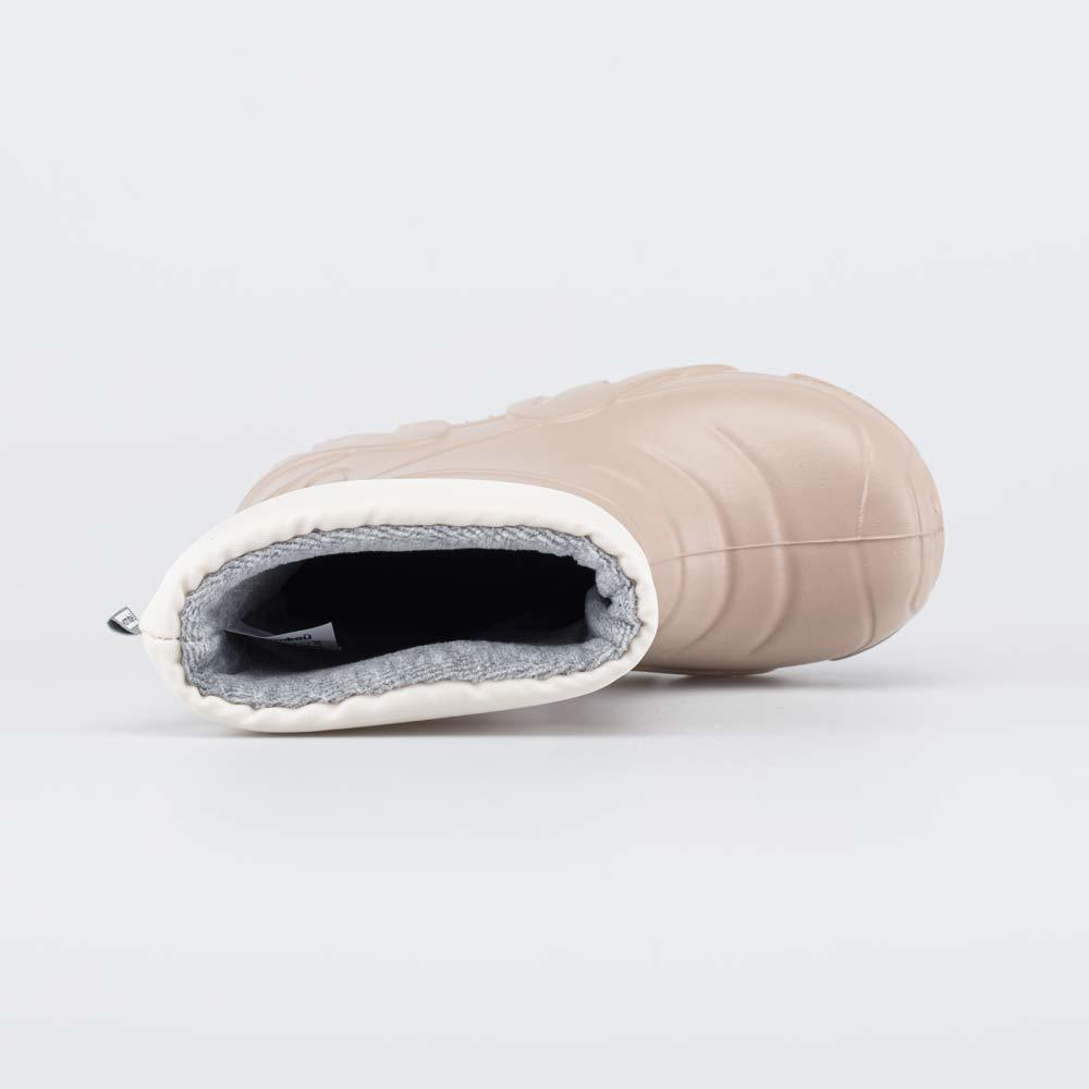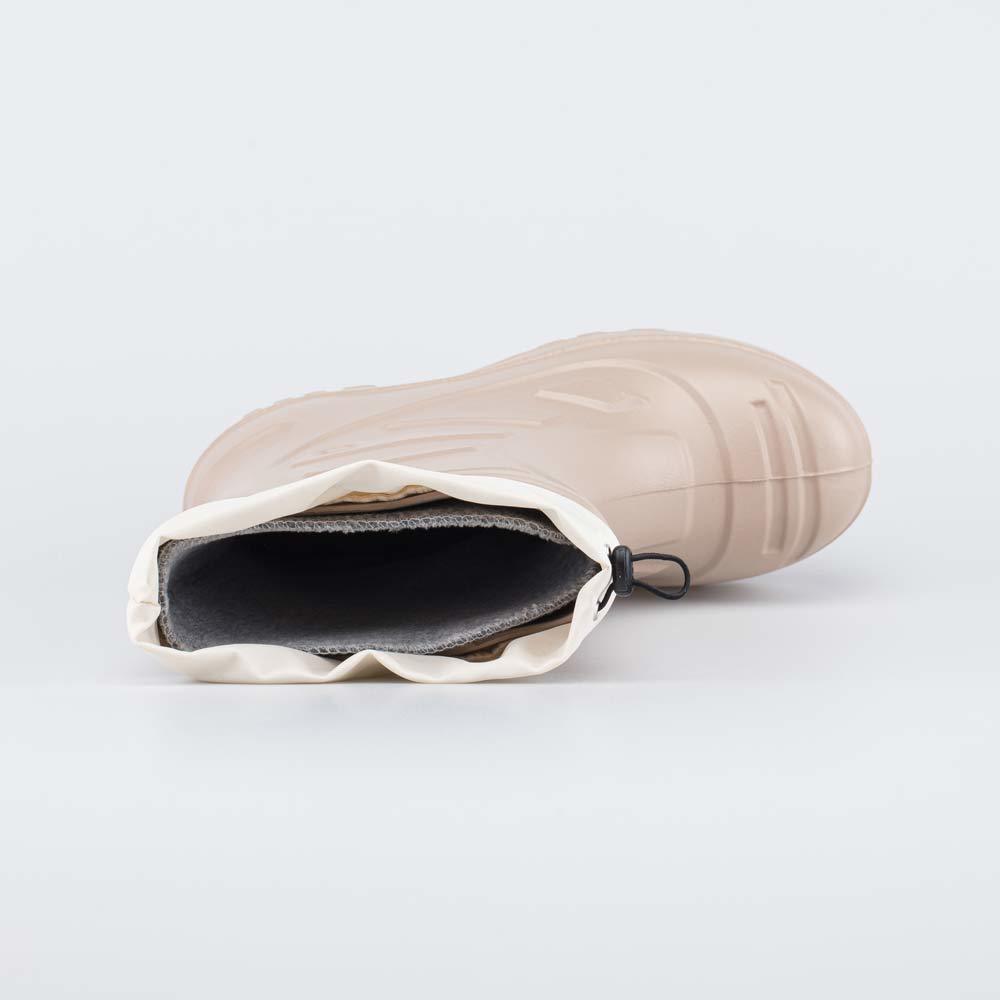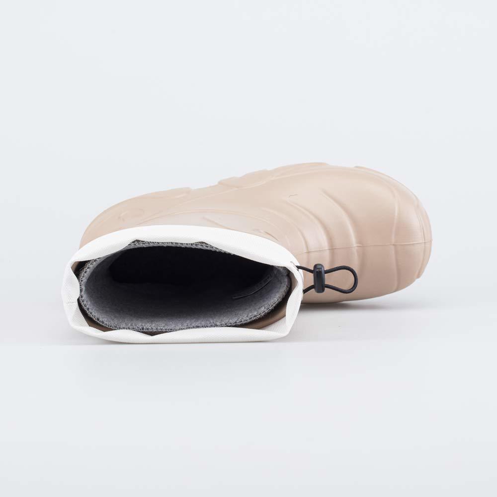 Описание Описание модели Детские утепленные сапоги из легкого, гибкого и амортизирующего материала ЭВА выполнены в трендовом бежевом цвете. Имеют двухслойный вкладной чулок и учитывают особенности дет... Показать описаниеской стопы. Вкладной чулок с пришитой войлочной стелькой состоит из нескольких слоев: 1 - внутренний из хлопкового флиса впитывает избыток влаги; 2 - утеплитель из полиэстера отвечает за теплоизоляцию. Укреплен внешним карманом из искусственной кожи, чтобы обеспечить дополнительную поддержку стопы. Чулок можно вынуть и просушить на батарее, а также при необходимости постирать в стиральной машине. Верхний манжет из нейлона затягивается на шнурок с фиксатором и защищает от попадания воды внутрь обуви. Обувь предназначена для детей дошкольного возраста, поэтому особое внимание уделено правильной конструкции: более плотный материал в районе пятки для придания необходимой жесткости и анатомическая форма следа. Сделано в России.