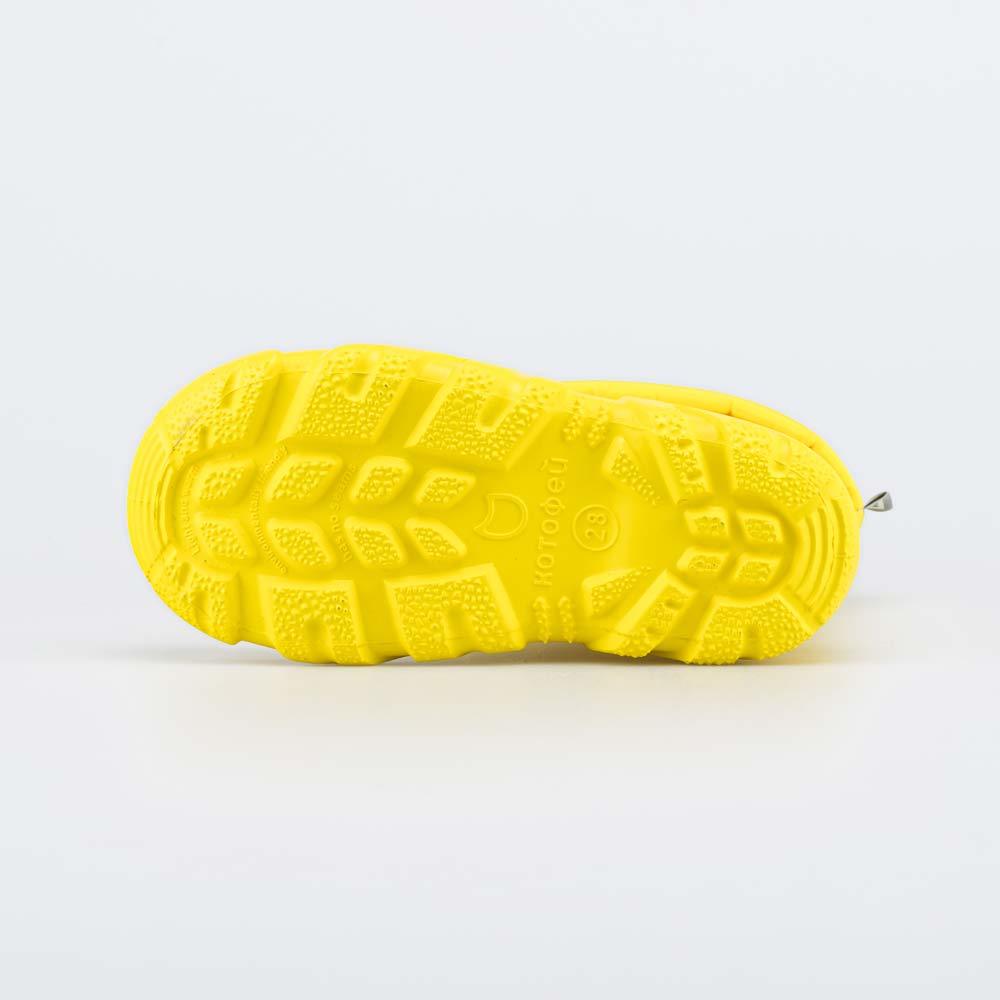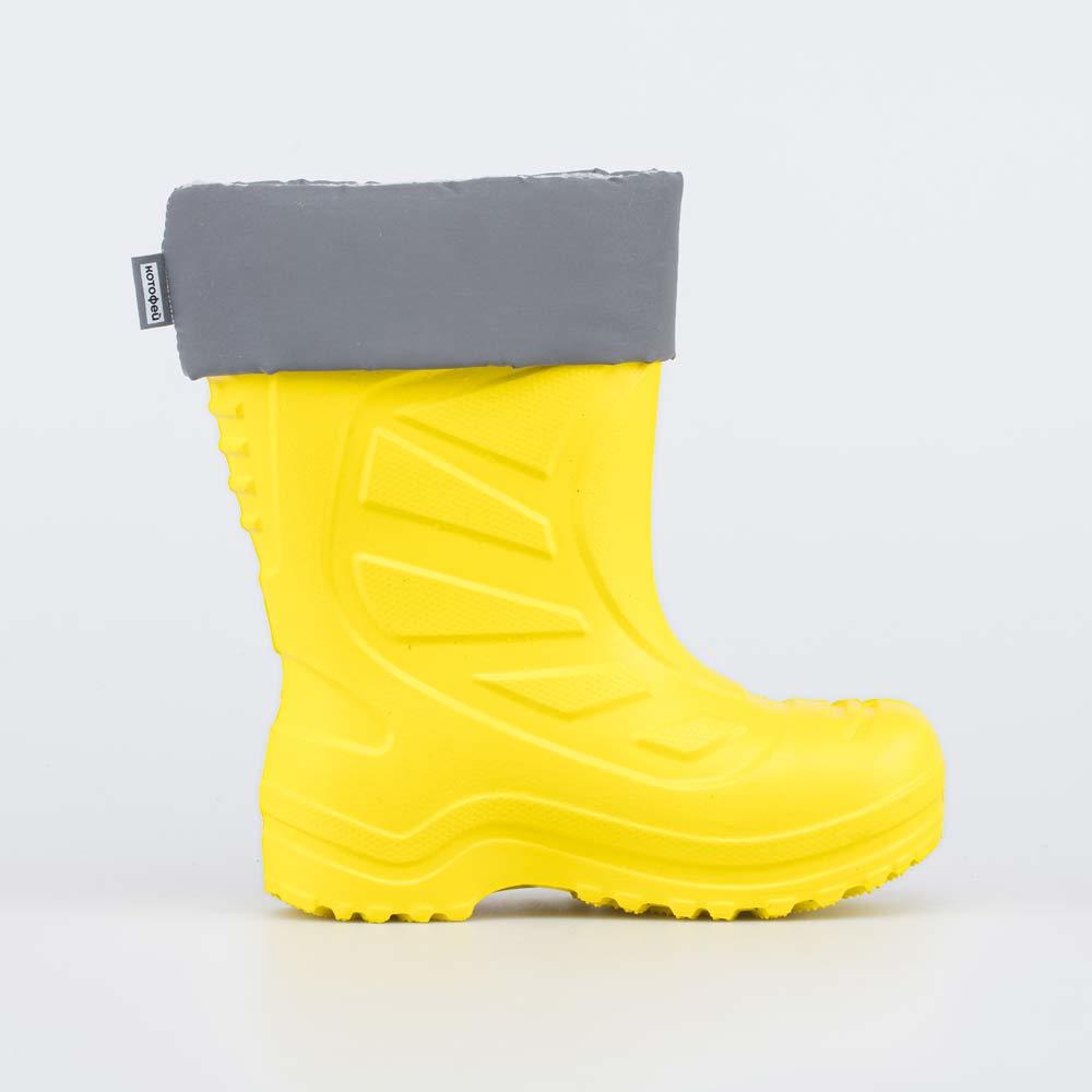 Описание Описание модели Желтые резиновые сапоги подходят как для мальчика, так и для девочки. Традиционная модель резиновых сапог всегда выглядит актуально и отлично сочетается с любой одеждой, как с... Показать описание городской, так и с походной. Подкладка и стелька из хлопкового флиса поддерживают комфортный микроклимат внутри, что особенно важно для обуви из водонепроницаемых материалов. Стельку можно вынуть и просушить на батарее, а также при необходимости постирать в стиральной машине. Подошва имеет глубокий рельеф, чтобы сохранить устойчивость на мокром грунте или песке. В районе пятки на ранте логотип Котофей. Материал верха и подошвы - водонепроницаемая резина.