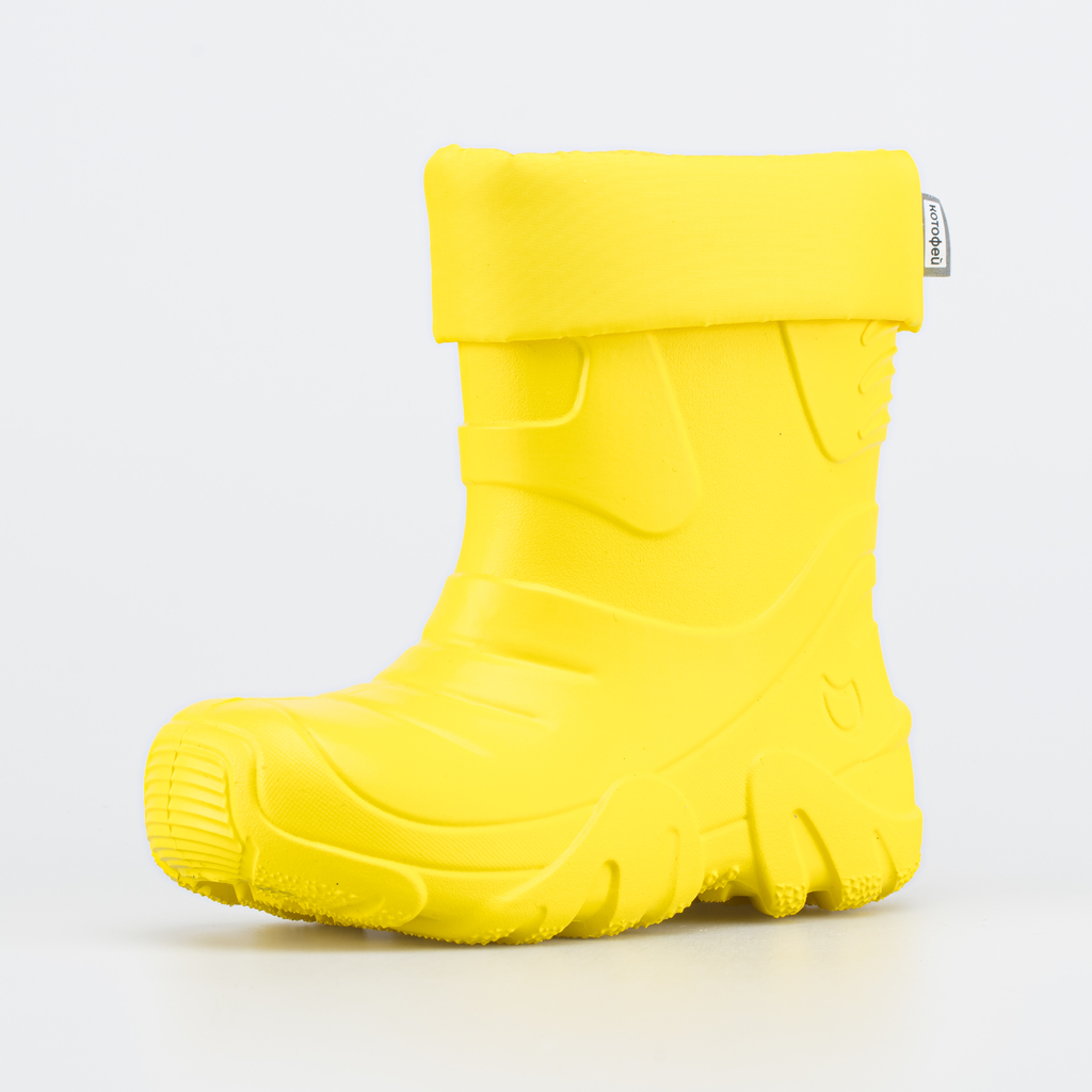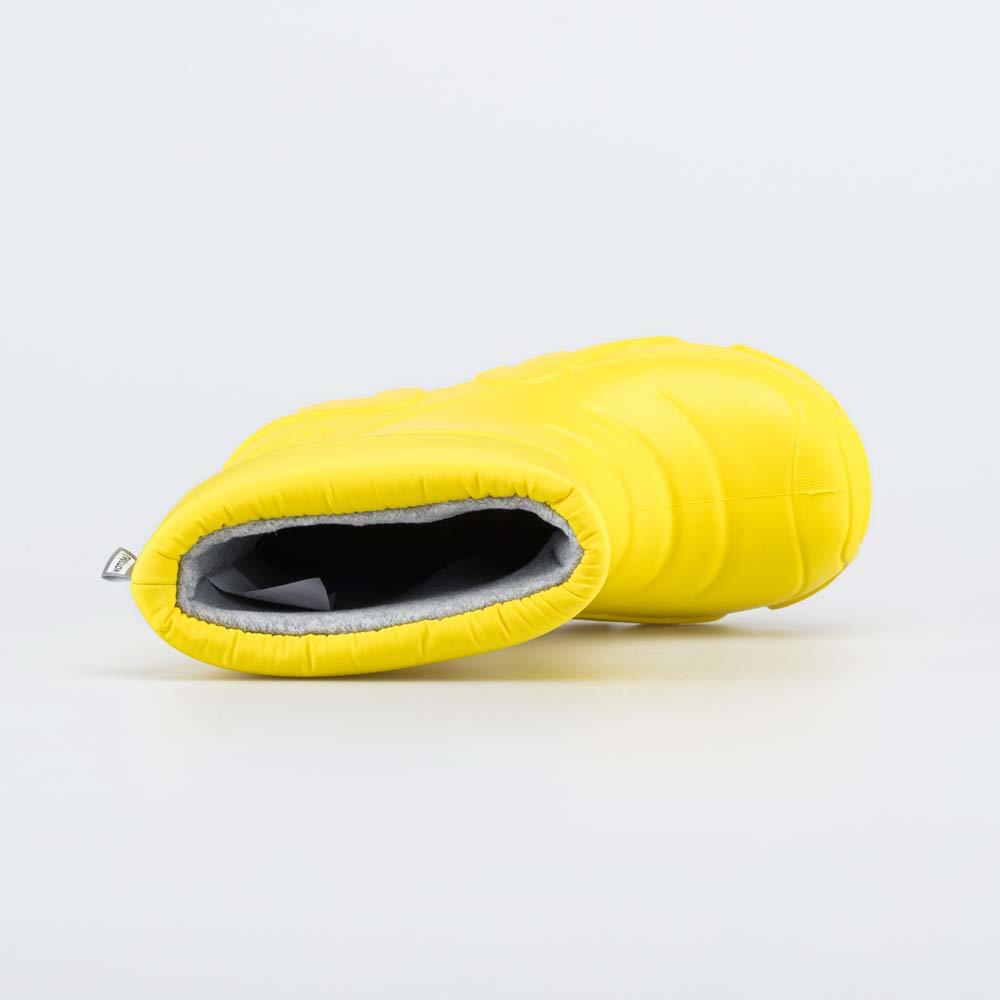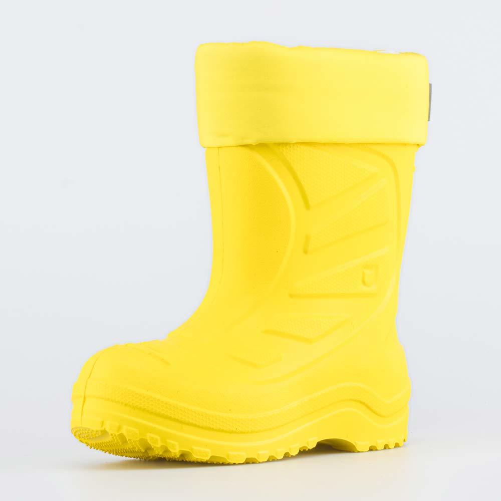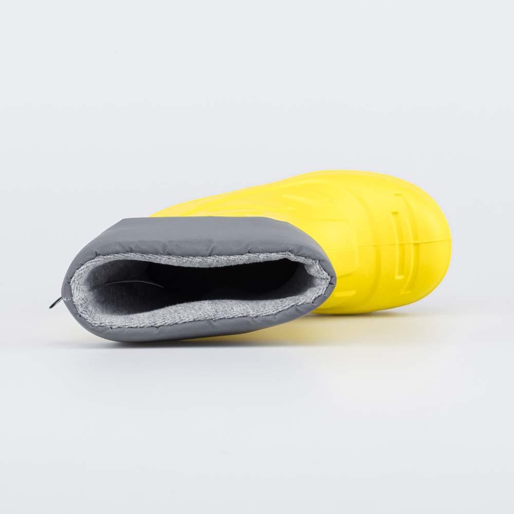Описание Описание модели Утепленные сапоги из легкого, гибкого и амортизирующего материала ЭВА выполнены в позитивном желтом цвете. Имеют вкладной чулок и учитывают возрастные особенности стопы. Вклад... Показать описаниеной чулок с пришитой войлочной стелькой состоит из нескольких слоев: 1 - внутренний из хлопкового флиса впитывает избыток влаги; 2 - утеплитель из полиэстера отвечает за теплоизоляцию. Дополнительно в пяточной части имеется карман из искусственной кожи, который обеспечивает поддержку стопы и предохраняет материал от преждевременного истирания. Чулок можно вынуть и просушить на батарее, а также при необходимости постирать в стиральной машине. Отворот из плотного нейлона в сочетании с сапожками становится элементом дизайна. Обувь предназначена для детей школьного возраста, поэтому особое внимание уделено правильной конструкции: более плотный материал в районе пятки для придания необходимой жесткости и анатомическая форма следа. Сделано в России.