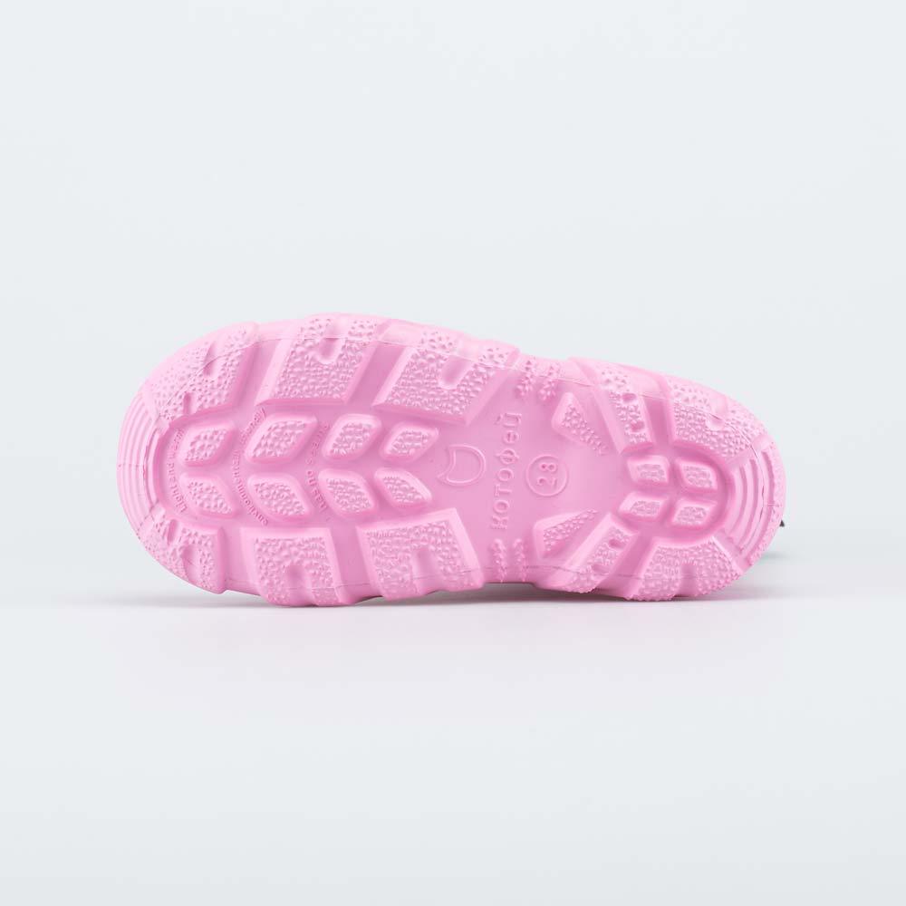 Описание Описание модели Розовые сапожки ЭВА с теплым вкладным чулком и светоотражателями подходят для девочки-школьницы. Верх и подошва выполнены из водонепроницаемого материала ЭВА. Внутри двухслойн... Показать описаниеый вкладной чулок: 1 - внутренний слой из мягкого флиса, на 80% состоящего из хлопка, отводит от стоп влагу и дарит комфорт. 2 - утеплитель из полиэстера обеспечивает теплоизоляцию. Дополнительно согревает вшитая в чулок войлочная стелька. Чулок укреплен внешним карманом из искусственной кожи, чтобы обеспечить дополнительную поддержку стопы. Чулок можно вынуть, просушить, а также, при необходимости, постирать. Отворот из плотного нейлона дополнен светоотражателями. Обувь предназначена для детей школьного возраста, поэтому особое внимание уделено правильной конструкции: в районе пятки более толстый слой ЭВА для придания необходимой жесткости, анатомическая подошва, круглый носок. Сделано в России.