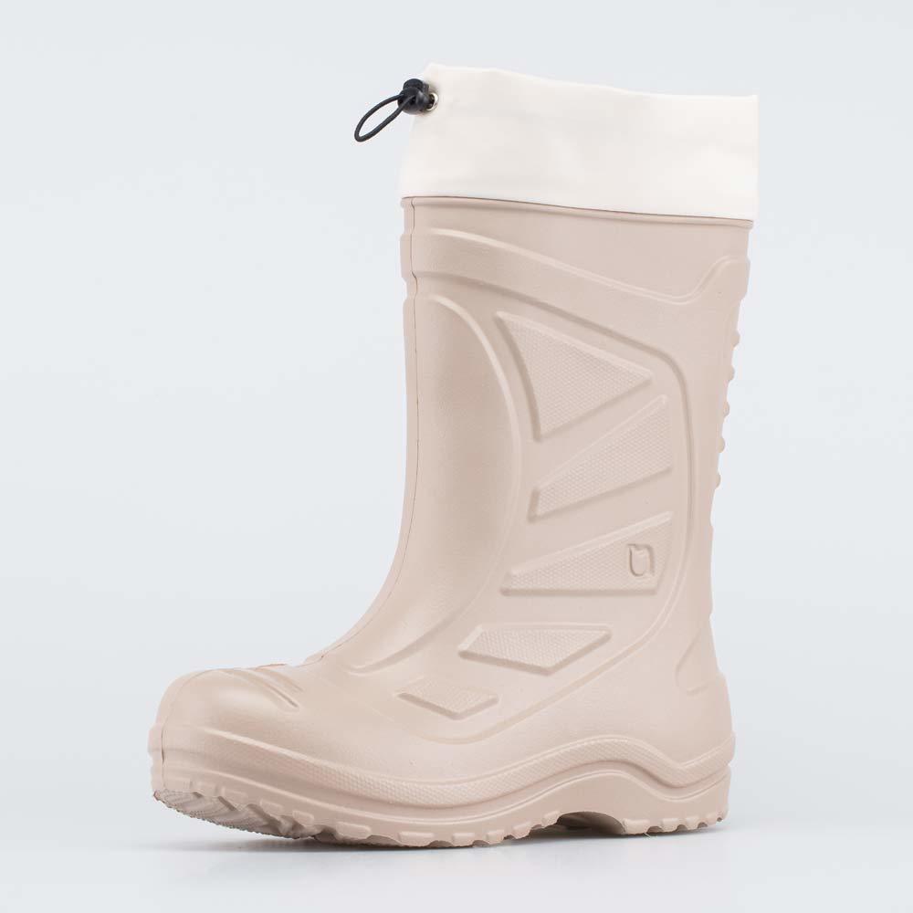Описание Описание модели Утепленные сапоги из легкого, гибкого и амортизирующего материала ЭВА выполнены в трендовом бежевом цвете. Имеют двухслойный вкладной чулок и учитывают особенности детской сто... Показать описаниепы. Вкладной чулок с пришитой войлочной стелькой состоит из нескольких слоев: 1 - внутренний из хлопкового флиса впитывает избыток влаги; 2 - утеплитель из полиэстера отвечает за теплоизоляцию. Укреплен внешним карманом из искусственной кожи, чтобы обеспечить дополнительную поддержку стопы. Чулок можно вынуть и просушить на батарее, а также при необходимости постирать в стиральной машине. Верхний манжет из нейлона затягивается на шнурок с фиксатором и защищает от попадания воды внутрь обуви. Обувь предназначена для детей школьного возраста, поэтому особое внимание уделено правильной конструкции: более плотный материал в районе пятки для придания необходимой жесткости и анатомическая форма следа. Сделано в России.