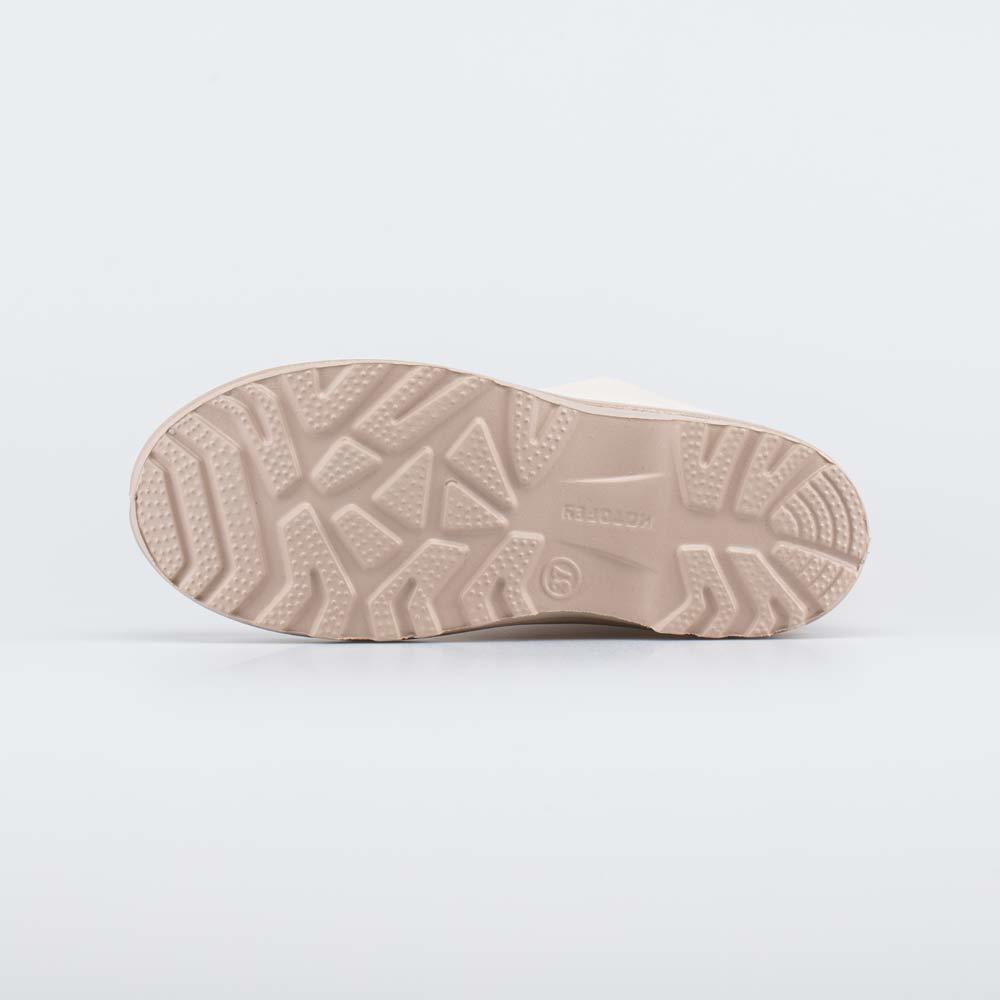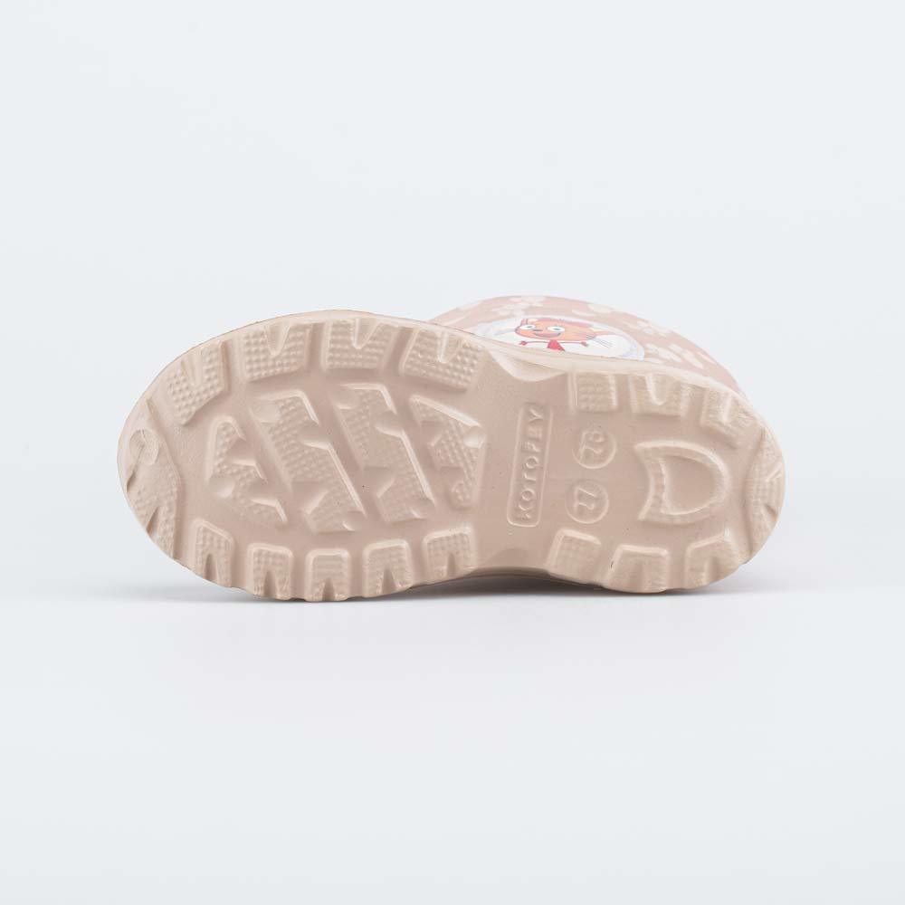Описание Описание модели Утепленные сапожки из легкого, гибкого и амортизирующего материала ЭВА выполнены в трендовом бежевом цвете. Имеют двухслойный вкладной чулок и учитывают особенности детской ст... Показать описаниеопы. Вкладной чулок с пришитой войлочной стелькой состоит из нескольких слоев: 1 - внутренний из хлопкового флиса впитывает избыток влаги; 2 - утеплитель из полиэстера отвечает за теплоизоляцию. Укреплен внешним карманом из искусственной кожи, чтобы обеспечить дополнительную поддержку стопы. Чулок можно вынуть и просушить на батарее, а также при необходимости постирать в стиральной машине. Верхний манжет из серебристого нейлона со светоотражающим эффектом, затягивается на шнурок с фиксатором и защищает от попадания воды внутрь обуви. Обувь предназначена для детей школьного возраста, поэтому особое внимание уделено правильной конструкции: более плотный материал в районе пятки для придания необходимой жесткости и анатомическая форма следа. Сделано в России.