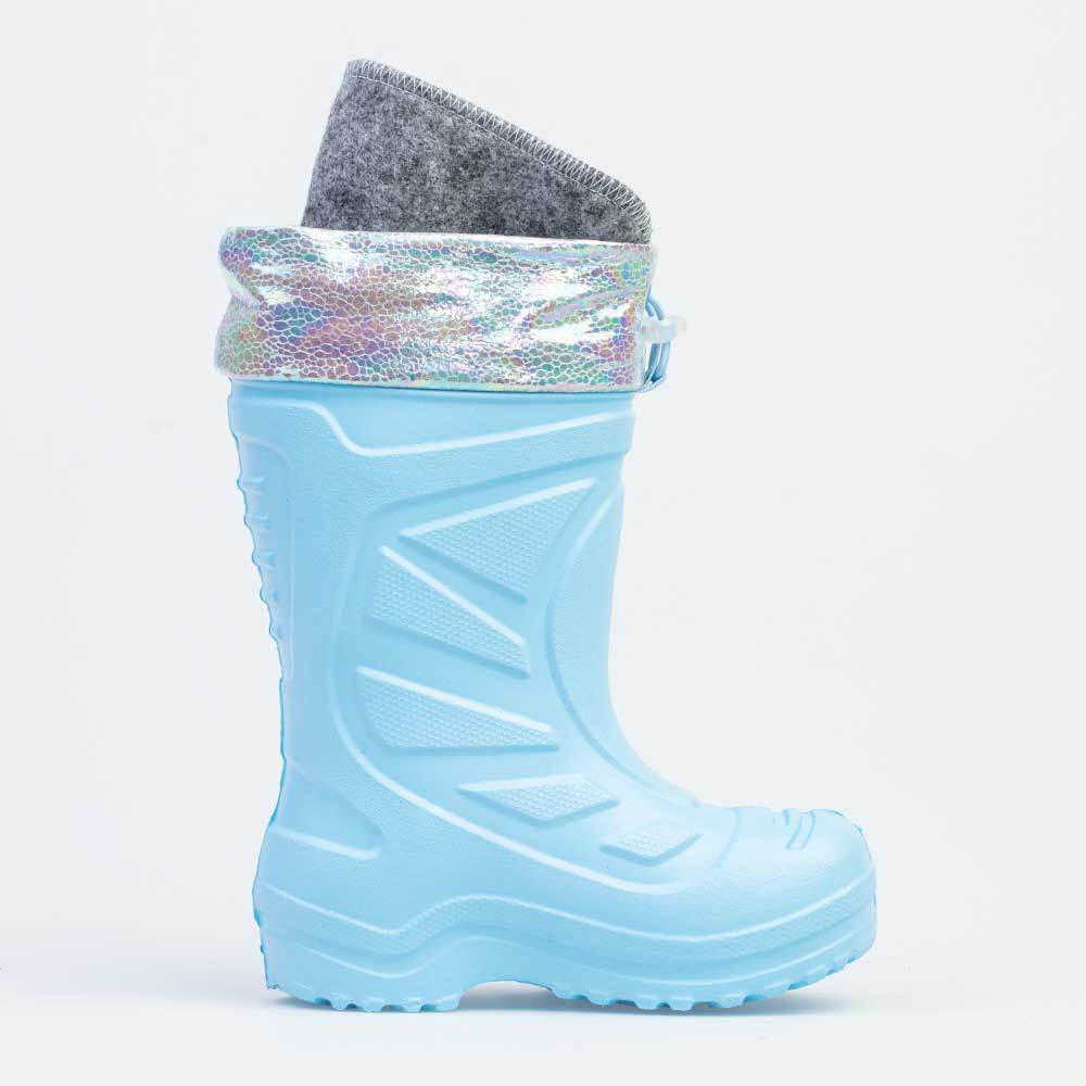 Описание Описание модели Детские утепленные сапоги из ЭВА подходят для дождливой погоды и учитывают особенности детской стопы. Вкладной чулок с пришитой войлочной стелькой имеет нескольких слоев: - пе... Показать описаниервый изготовлен из мягкого флиса, который на 80% состоит из хлопка и хорошо отводит от стопы влагу. - второй слой – утеплитель из гипоаллергенного синтетического материала, обеспечивающий теплоизоляцию. Чулок укреплен внешним карманом из искусственной кожи, чтобы обеспечить дополнительную поддержку для стопы и защитить задник от преждевременного истирания. Его можно вынуть и просушить на батарее, а также при необходимости постирать в режиме ручной стирки. Отворот из плотного нейлона имеет голубой цвет в тон сапожек. Обувь предназначена для детей дошкольного возраста, поэтому особое внимание уделено правильной конструкции: более плотный материал в районе пятки для придания необходимой жесткости и анатомическая форма следа. Сделано в России.