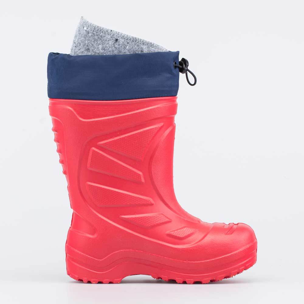 Описание Описание модели Детские утепленные сапоги из легкого, гибкого и амортизирующего материала ЭВА выполнены в позитивном красном цвете. Имеют вкладной чулок и учитывают особенности детской стопы.... Показать описание Вкладной чулок с пришитой войлочной стелькой состоит из нескольких слоев: 1 - внутренний из хлопкового флиса впитывает избыток влаги; 2 - утеплитель из полиэстера отвечает за теплоизоляцию. Дополнительно в пяточной части имеется карман из искусственной кожи, который обеспечивает поддержку стопы и предохраняет материал от преждевременного истирания. Чулок можно вынуть и просушить на батарее, а также при необходимости постирать в стиральной машине. Отворот из плотного нейлона в сочетании с сапожками становится элементом дизайна. Обувь предназначена для детей дошкольного возраста, поэтому особое внимание уделено правильной конструкции: более плотный материал в районе пятки для придания необходимой жесткости и анатомическая форма следа. Сделано в России.