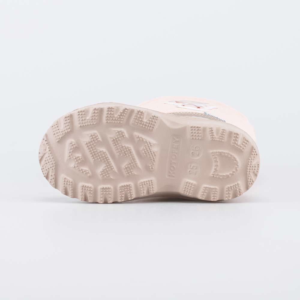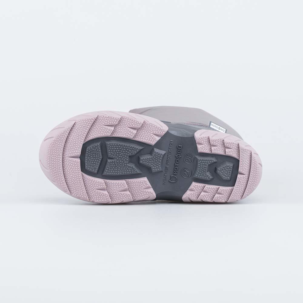 Описание Описание модели Розовые детские сапожки Котофей из группы \'SNOW&RAIN\' сочетают в себе достоинства резинового сапога и утепленной обуви, они идеально подходят для ранней весны и поздней осен... Показать описаниеи. Материал верха - специальный текстиль на основе нейлона, защищающий от ветра, грязи и брызг. Материал подкладки и стельки - шерстяной мех из натуральной овечьей шерсти, который отлично сохраняет тепло, отводит влагу, создает уют вокруг ножки. Галоша из ТЭП (термоэластопласта) обеспечивает защиту от влаги и хорошую устойчивость на дороге с морозной слякотью. Шнурок-резинка с фиксатором позволяет отрегулировать по ноге голенище обуви, а ремешок с липучкой облегчает обувание. Модель анатомически правильная: имеет небольшую приподнятость в пяточной части и круглый носок. Сделано в России. Внимание: во избежание намокания обуви не рекомендуется наступать в лужу выше уровня галоши!
