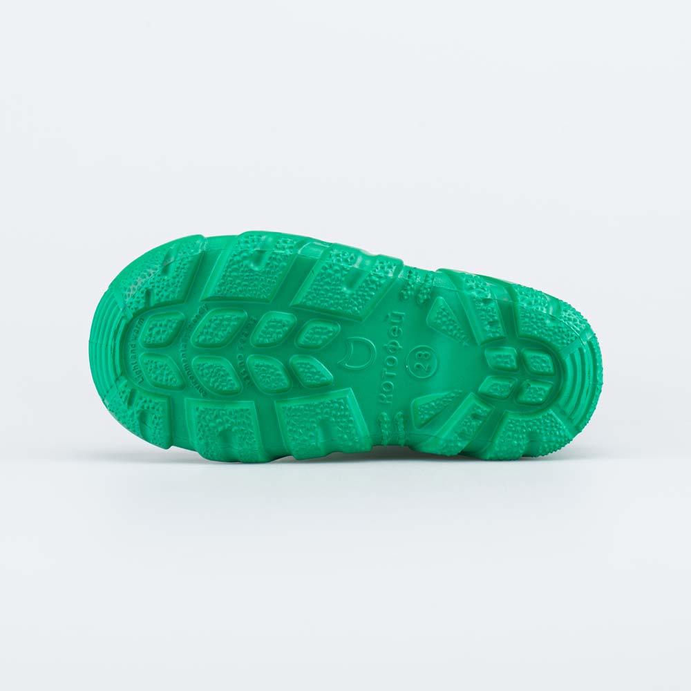 Описание Описание модели Детские сапожки из ЭВА от Котофей со съемным утеплителем имеют манжету для защиты от влаги. Водонепроницаемый материал ЭВА – лёгкий, гибкий и амортизирующий. Вкладной чулок с ... Показать описаниепришитой войлочной стелькой состоит из двух слоев: 1 - внутренний из хлопкового флиса впитывает влагу от стоп; 2 - утеплитель из полиэстера обеспечивает теплоизоляцию. Чулок укреплен внешним карманом из искусственной кожи, который обеспечивает поддержку для стопы и защищает задник от истирания. При необходимости чулок можно вынуть, чтобы просушить или постирать. Летом его можно убрать и продолжить носить водонепроницаемые сапоги без утеплителя. Манжет из перламутрового нейлона затягивается на шнурок с фиксатором и защищает от попадания капель и брызг внутрь обуви. Модель разработана для детей: имеет анатомическую форму следа и более плотный материал в районе пятки, который обеспечивает ей необходимую жесткость. Войлочная стелька приформовывается к стопе, принимая индивидуальную форму. Сделано в России