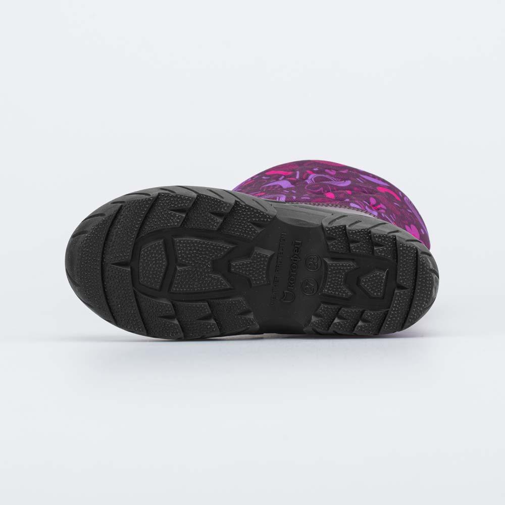 Описание Описание модели Сапожки SNOW&RAIN для девочки дошкольного возраста сочетают в себе достоинства резинового сапога и утепленной обуви. Материал верха - специальный текстиль, защищающий от ветра... Показать описание, грязи и брызг. Галоша из ТЭП (термоэластопласта) обеспечивает защиту от влаги и при этом обладает повышенной теплоизоляцией и устойчивостью на зимних дорожках. Материал подкладки и стельки - шерстяной мех, который отлично сохраняет тепло, отводит от стоп влагу. Сноубутсы украшены принтом. Светоотражающие элементы обеспечивают безопасность в темноте. Модель анатомически правильная: имеет небольшую приподнятость в пяточной части и круглый носок, обеспечивает устойчивость на дороге с морозной слякотью. Сделано в России. Внимание: во избежание промокания обуви не рекомендуется наступать в лужу выше уровня галоши!
