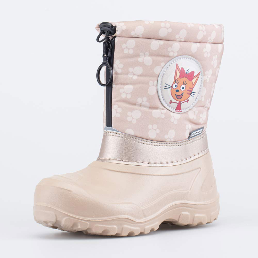 Описание Описание модели Детские сапожки Котофей из группы SNOW&RAIN сочетают в себе достоинства резинового сапога и утепленной обуви. Они идеально подходят для ранней весны и поздней осени. Материал ... Показать описаниеверха - специальный текстиль на основе нейлона, защищающий от ветра, грязи и брызг. Галоша из лёгкого материала ЭВА обеспечивает защиту от влаги. Внутри вкладной чулок из шерстяного меха. Он согревает ножки, отводит от них влагу, дарит уют. При необходимости его можно вынуть и проветрить. Молния обеспечивает хорошую раскрываемость обуви во время обувания. Сверху голенище затягивается на кулиску, что обеспечивает защиту от попадания снега внутрь. Сапожки оснащены светоотражающими элементами, декорированы принтом и нашивкой с героиней популярного мультфильма Три кота. Модель анатомически правильная: имеет небольшую приподнятость в пяточной части и круглый носок, обеспечивает устойчивость на дороге с морозной слякотью. Сделано в России. Во избежание промокания обуви не рекомендуется наступать в лужу выше уровня галоши!