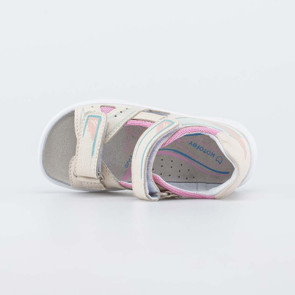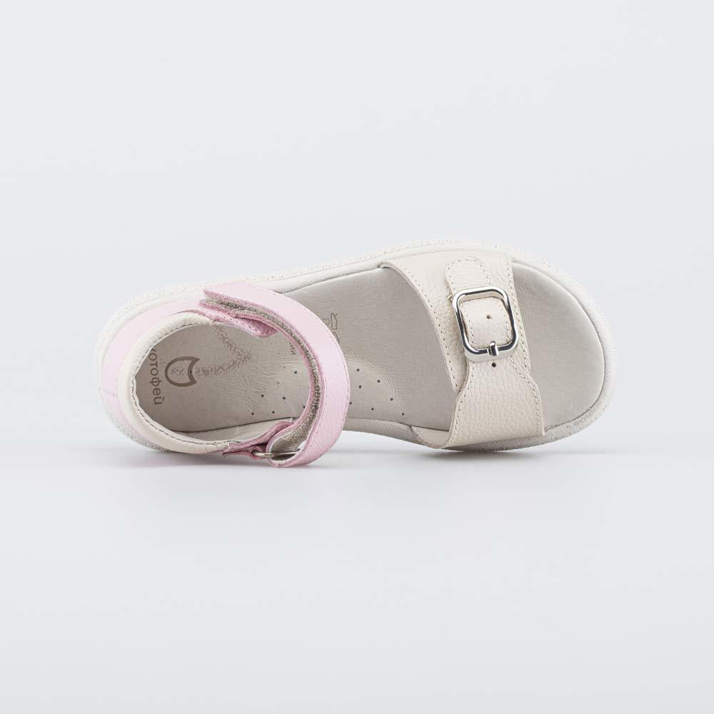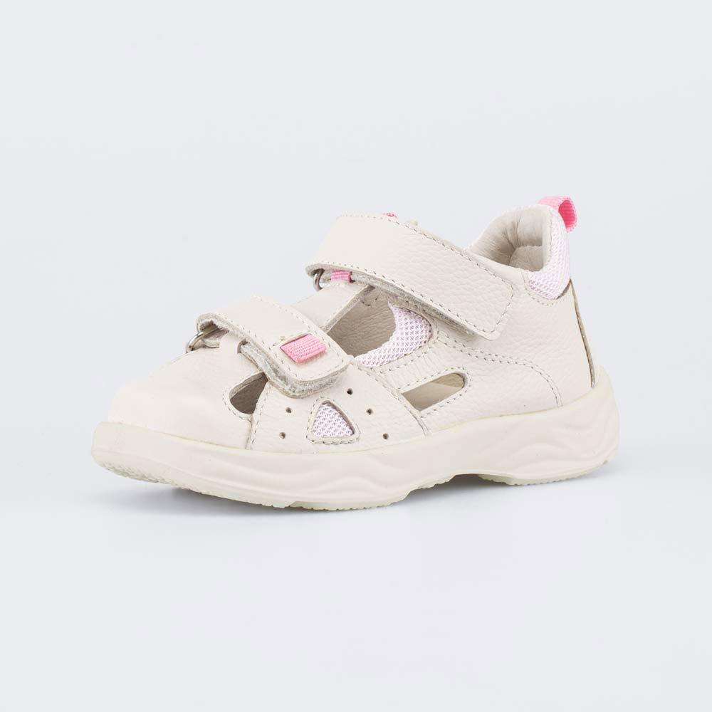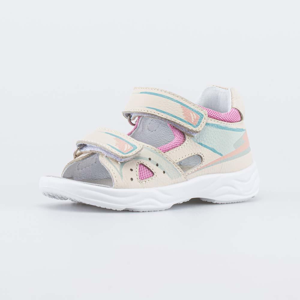 Описание Описание модели Кожаные сандалии разработаны для девочки, которая только начинает ходить. Детские сандалии имеют верх из натуральной кожи, которая дополнена дышащим текстилем в сеточку. Подкл... Показать описаниеадка и несъемная стелька из белой натуральной кожи обеспечивают гигиенические свойства и защищают носочки от окрашивания. Сандалии с закрытым задником поддерживают пятку при ходьбе, при этом полуоткрытая конструкция обеспечивает вентиляцию. В таких сандалиях комфортно в жаркую погоду, также это удачный вариант обуви в детский сад. Сандалии на липучках-велькро легко отрегулировать по подъему детской ножки, в них удобно обувать ребенка. Подошва из ПУ (полиуретана) гибкая, легкая и амортизирующая. Не оставляет следов на полу, поэтому обувь может быть использована в качестве сменки для дошкольных учреждений. Модель анатомически правильная: имеет приподнятость пяточной части и мягкий подсводник. Это положительно влияет на развитие стоп и всего опорно-двигательного аппарата. Сделано в России.