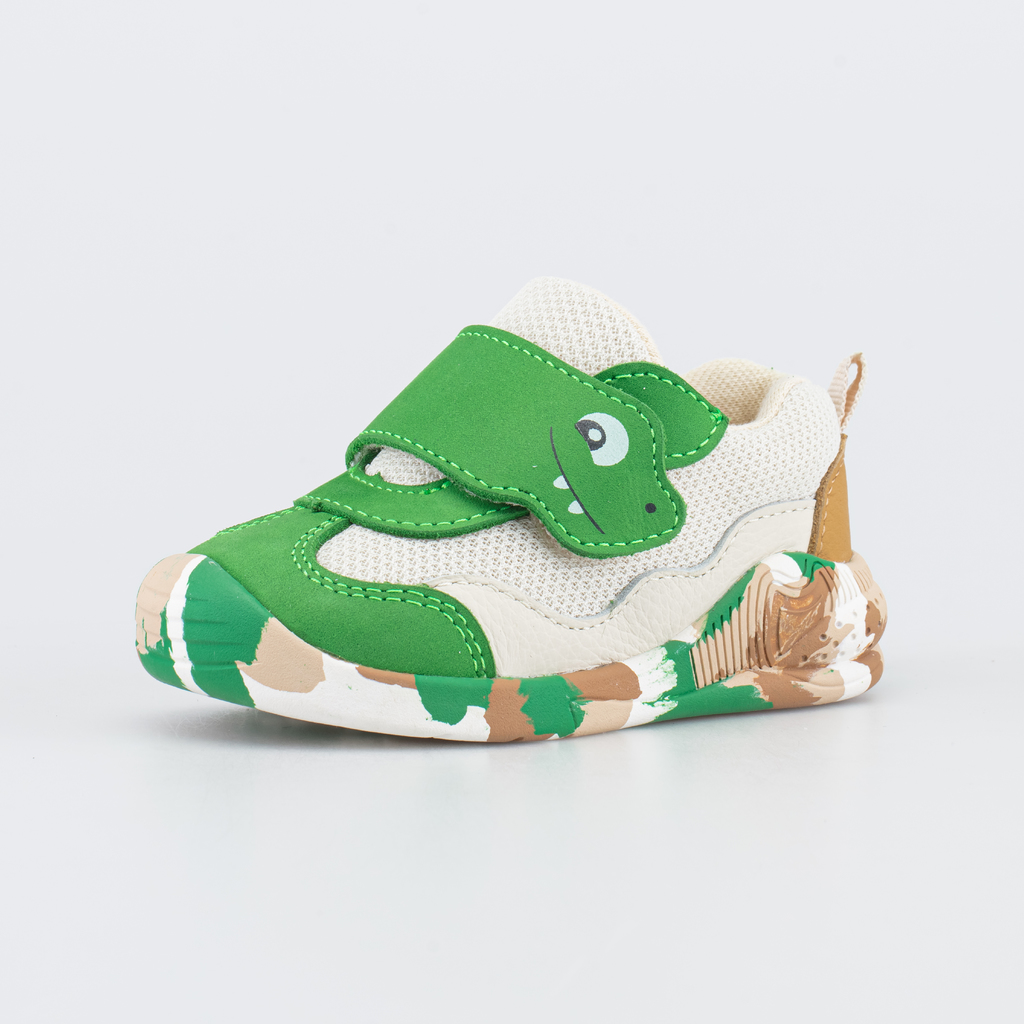 Описание Описание модели Яркие кроссовки, своим дизайном напоминающие о диких Джунглях, подходят для детей, которые уже начали активно ходить. Верх изготовлен из вязаного полиэстера, обладающего высок... Показать описаниеой воздухопроницаемостью. Фигурные детали из искусственной кожи разных фактур создают каркас модели и подчеркивают современный дизайн. Подкладка из хлопка обеспечивает комфортный и безопасный микроклимат внутри обуви. Формованная основа съемной кожаной стельки амортизирует и поддерживает стопу. Задник необходимой жесткости фиксирует пяточку при ходьбе, а мягкий манжет дарит комфорт. Кроссовки на липучках надежно фиксируются на детской ножке. Легкая подошва из резины привлекает внимание расцветкой и рельефной формой. Образует наплыв на носочную часть, предохраняя ее повреждений, а пальчики от ударов. Для защиты от грязи и пыли время от времени обрабатывайте обувь специальным спреем и чистите мягкой щеткой. Машинная стирка исключена. Сделано в России.