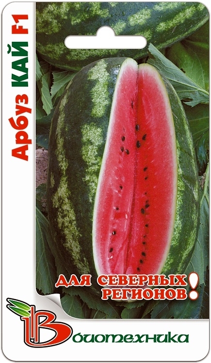 Растение с мощным ростом, длинноплетистое. Лист крупный, зеленый, с опушением, узкодольный, среднерассеченный. Плод овально-шаровидный, средняя масса товарного плода 4,2 кг. Поверхность слабосерментир... Показать описаниеованная, фон зеленый, рисунок - темно-зеленые, почти черные, шиповатые полосы. Кора средней толщины, на разрезе светло-зеленая. Мякоть интенсивно-красная, зернистая, нежная, сладкая. Для получения гарантированного урожая в регионах с умеренным и прохладным климатом необходимо применить рассадный способ выращивания. Посев на рассаду проводят в горшочки с питательной смесью диаметром 10 см. Ко времени высадки рассады температура почвы в пленочной теплице должна прогреться до 14-16°С, а растения достигнуть возраста 30-35 суток и иметь 3-4 настоящих листа. Во время вегетации необходимы регулярные поливы, а также 2-3 подкормки комплексным минеральным удобрением. Плодоношение одного растения необходимо ограничивать 1-2 плодами, неплодоносящие побеги удалять.