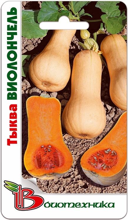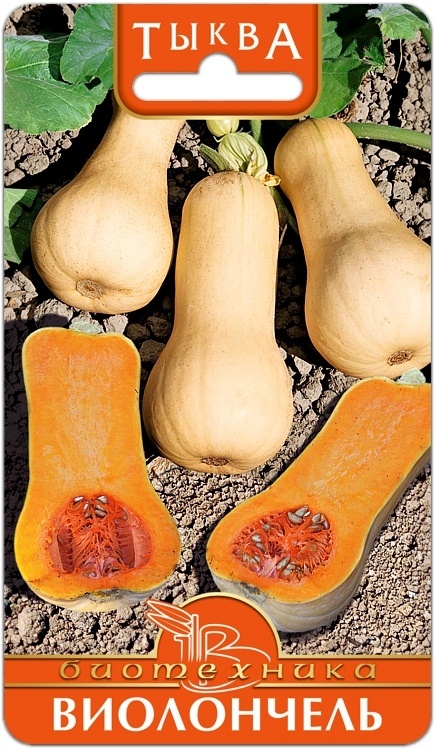 Сорт среднеспелый, созревание на 110-й день. Относится к группе мускатных тыкв. Растение мощное, плетистое. Плод имеет форму виолончели, розово-бежевого цвета, мякоть ярко-оранжевого цвета, плотная, м... Показать описаниеаслянистая с ярким фруктовым ароматом. Семенная камера очень маленькая. Средняя масса плода 6-8 кг. Содержит большое количество антиоксидантов. Кулинарное применение очень разнообразно от тушения до супов и сладостей. Может употребляться в пищу в свежем виде без термической обработки.
