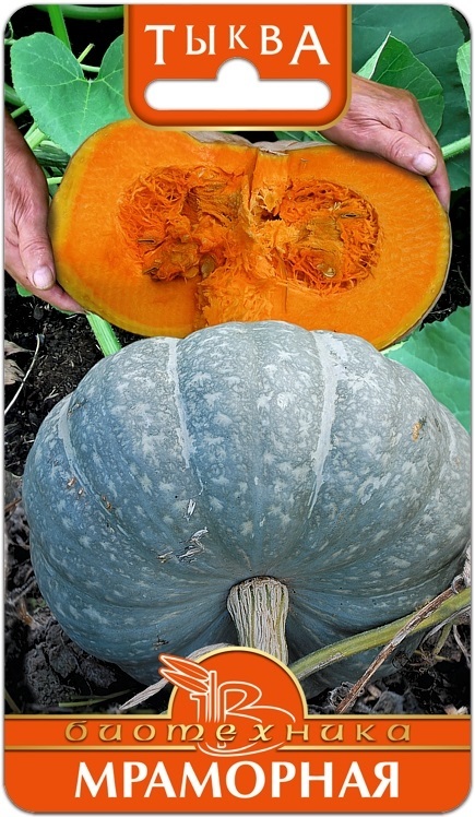 Растение плетистое, мощное с крупными листьями. Плоды среднего размера, 3-3,5 кг, оптимальные для хранения и кулинарного использования. Мякоть желто-оранжевая с приятным ароматом. Тип: тыква крупнопло... Показать описаниедная. Растение: плетистого типа. Срок созревания: поздняя (135-140 дней от посева). Плоды: круглые, приплюснутые, гладкие, без рисунка, окраска коры – серая, мякоти – желто-оранжевая, вес плода 3-3,5 кг. Устойчивость: высокая устойчивость к бактериозу и белой гнили. Способ выращивания: в открытом грунте. Назначение: для длительного хранения (в процессе хранения улучшаются вкусовые качества).