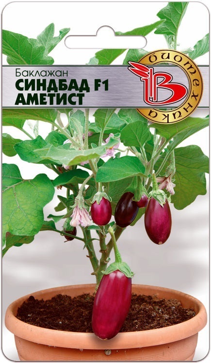 Уникальная специальная селекция овощных растений для выращивания в контейнерах или горшках. Данная группа показывает лучший результат на открытом воздухе – балкон, веранда, крыльцо, свободно стоящие г... Показать описаниеоршки. Такой способ выращивания имеет ряд существенных преимуществ – занимают мало места, возможность оперативной перестановки, более контролируемый уход, красивый внешний вид. Серия Синдбад – это компактные штамбовые растения высотой 40-50 см, с ярко выраженным центральным стволиком. Внешне растение напоминает карликовое деревце. Листья некрупные, светлые, с мягким опушением, приятные на ощупь. Важная особенность – цветки собраны в кисть по 3-5 штук, что делает цветение и плодоношение растений очень эффектным и декоративным. Плоды овальные, весом 80 г, светло-фиолетового цвета. На одном растении формируется 15-18 плодов. Выращивается рассадным способом. Семена высевают в рассадные ящички в специально подготовленную почву, слегка присыпают сверху почвой и содержат при температуре 20-25°С. Когда сеянцы сформируют 1-2 настоящих листочка их пикируют в горшочки диаметром 10 см. В постоянный горшок или контейнер растение пересаживают когда начнется ветвление и сформируется 6-8 настоящих листочков. При выращивании в контейнере растения необходимо регулярно поливать и делать подкормки полным минеральным удобрением раз в десять дней.