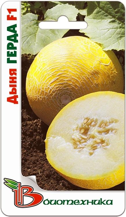 Растение длинноплетистое, быстрорастущее. Плод круглой формы, весом 1,5-2 кг. Цвет плода желтовато-бежевый с ажурной сеткой. Мякоть беловато-кремового цвета, сочная, нежная. Для получения гарантирован... Показать описаниеного урожая в северных регионах необходимо применить рассадный способ выращивания. Посев на рассаду проводят в горшочки с питательной смесью диаметром 10 см. Ко времени высадки рассады температура почвы в пленочном укрытии должна прогреться до 14-16°С, а растения достигнуть возраста 30-35 суток и иметь 3-4 настоящих листа. Во время вегетации необходимы регулярные поливы, а также 2-3 подкормки комплексным минеральным удобрением. Убирают плоды гибрида Герда F1 многократно, выборочно, по мере созревания. Своевременное снятие с плети зрелых плодов способствует лучшему росту и созреванию оставшихся.