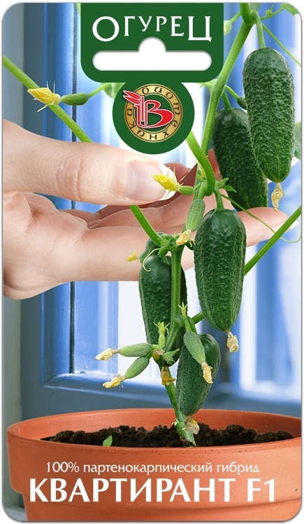 Квартирант F1 – 100% партенокарпический гибрид с женским типом цветения. При посеве в весенне-летний период – 48-52 дня до первого сбора плодов. Растение очень компактное, с маленькими листьями, не об... Показать описаниерастает боковыми побегами. Плоды многочисленные, очень маленькие – 5-8 см, мелко бугорчатые, хрустящие. Генетически свободен от горечи. Предназначен для потребления в свежем виде. При выращивании в домашних условиях поступают следующим образом: Семена высевают в горшки, объемом 10-15 литров, со специально подготовленной почвой (2 части перегноя, 1 часть дерновой земли, 1 часть песка) на глубину 1,5 см. Температура воздуха и почвы должна быть 20-23°С. Грунт равномерно увлажняют (не допускается перелив и закисание почвы). После появления всходов, в процессе роста растений, не допускать снижение температуры ниже 14°С. Необходимо опрыскивание теплой водой один раз в день. Во время вегетации необходимы подкормки полным минеральным удобрением с преобладанием азота и содержащие микроэлементы. Прекрасные результаты дает дополнительная подсветка растений в зимнее время. Во время плодоношения необходимо регулярно снимать зеленцы, что стимулирует появление новых завязей. Гибрид так же пригоден для выращивания в любых типах теплиц.
