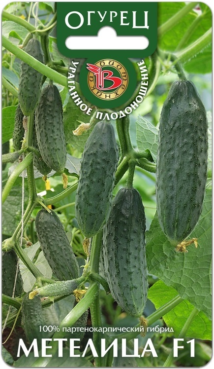 Раннеспелый - от всходов до первых сборов 42-43 дня, партенокарпический (не требует опыления) гибрид. Боковой побег формирует 3-4 междоузлия и заканчивается пучковой завязью, формирующей 5-6 плодов. П... Показать описаниелод красивой цилиндрической формы, длиной 6-8 см, темно-зеленого цвета с размытыми белесыми полосами, доходящими до 1/3 плода. Крупнобугорчатый, расположение бугорков редкое, окраска шипов белая. Кожица жесткая, плотная, мякоть сочная, хрустящая. Генетически свободен от горечи. Важная особенность гибрида - длительный период плодоношения (до наступления стабильных заморозков). Предназначен для потребления в свежем виде и засолки. Для регионов с прохладным климатом необходим рассадный способ выращивания. Семена высевают в горшочки диаметром 10 см со специально подготовленной почвой (2 части перегноя, 1 часть дерновой земли, 1 часть песка), на глубину 1,5 см. Температура воздуха и почвы должна быть 20-23°С. Грунт равномерно увлажняют (не допускается перелив и закисание почвы). После появления всходов, в процессе роста растений, не допускать снижение температуры ниже 14°С. Сделать 1-2 подкормки полным минеральным удобрением с преобладанием азота. Рассада высаживается, когда минует угроза заморозков.