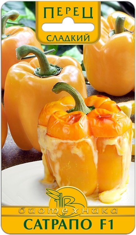 Сорт раннеспелый - техническая спелость наступает на 95-100 день, биологическая - на 120-140 день от всходов. Куст среднерослый, высотой 51-52 см, среднеоблиственный. Лист зеленый, яйцевидно-удлиненно... Показать описанией формы. Плоды удлинённо-кубовидной формы, крупные, весом 160-200 г, поникающие. Окраска плода в технической спелости тёмно-зеленая, в биологической апельсиново-оранжевая. Толщина стенки 6-8 мм, гнезд 3-4. Аромат средний, мякоть нежная. Обладает отличными вкусовыми качествами, хорошей транспортабельностью. Высадку рассады проводят в фазу бутонизации - начале цветения 50-60 дневной рассадой - для теплиц, 45 дневной рассадой - для парников и открытого грунта. Густота посадки 3-5 растений на м2, для обогреваемых теплиц и 5-8 растений на м2, для необогреваемых теплиц.