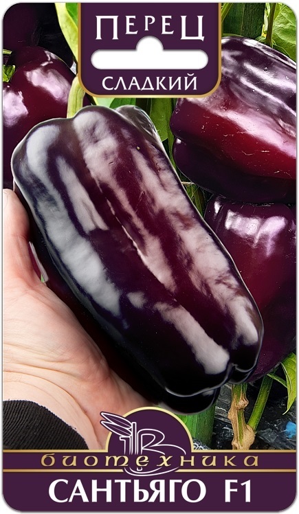 Период от полных всходов до начала технической спелости плодов 87-95 дней. Растение штамбовое, полураскидистое, высотой 40-45 см. Все части растения (стебли, листья) содержат большое количество антоци... Показать описаниеана фиолетового пигмента, который усиливает холодостойкость растения. Плод конусовидной формы, пониклый, 3-4 камерный. Оригинального цвета, даже внутренние перегородки плода антоцианово-вишневого. Средний вес плода 120-125 г, толщина стенки 4-5 мм. Плоды имеют сильный приятный перечный аромат.