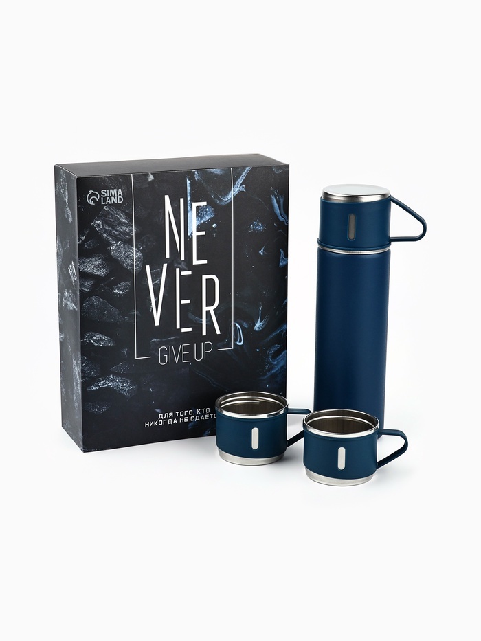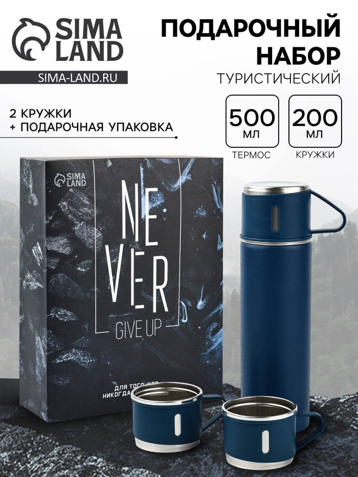 Подарочный набор туристический Never give up, термос 500 мл, кружка 3 шт.Вопросы по товару