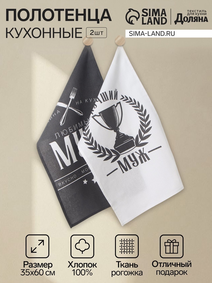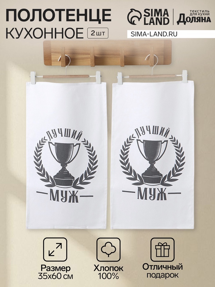 Набор кухонных полотенец Доляна «Лучший муж», 35?60 см-2 шт., 100% хлопок, 160 г/м?Набор кухонных полотенец Доляна «Лучший муж», 35?60 см-2 шт., 100% хлопок, 160 г/м?Набор кухонных полотенец Доляна «Лучший муж», 35?60 см-2 шт., 100% хлопок, 160 г/м?