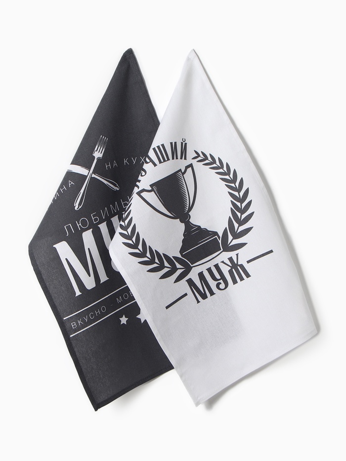 Набор кухонных полотенец Доляна «Муж», 35?60 см,2 шт., 100% хлопок, 160 г/м? Вопросы по товару