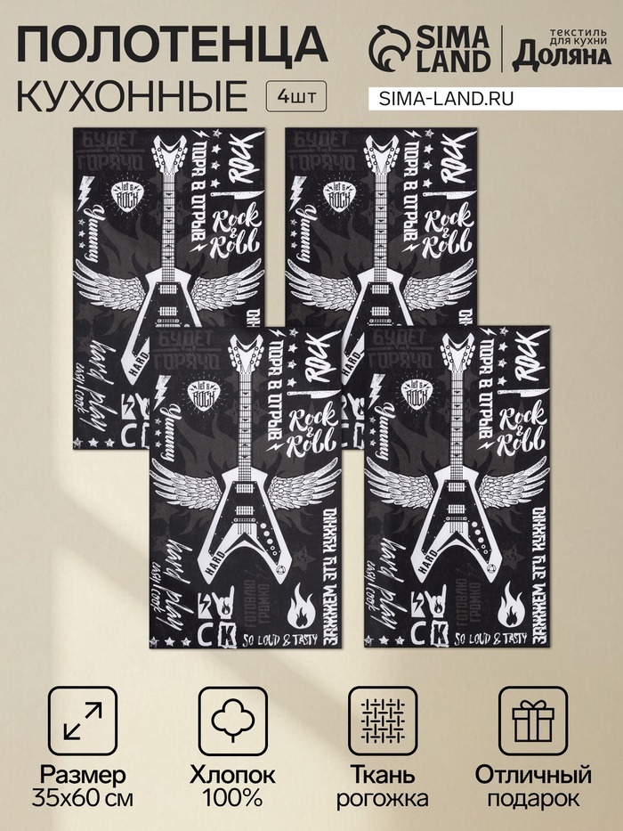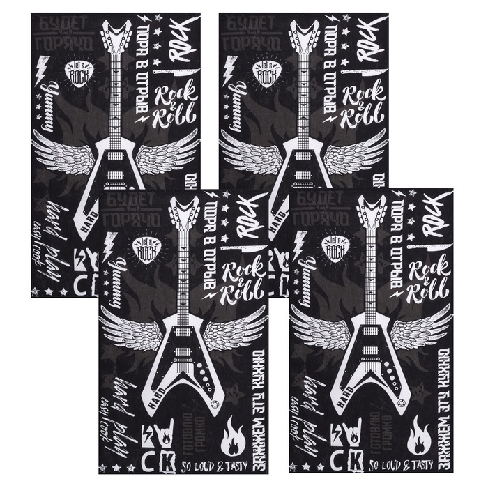 Набор полотенец кухонных «Доляна» Les't rock, 35?60 см - 4 шт., хлопок 100%Набор полотенец кухонных «Доляна» Les't rock, 35?60 см - 4 шт., хлопок 100%Набор полотенец кухонных «Доляна» Les't rock, 35?60 см - 4 шт., хлопок 100%