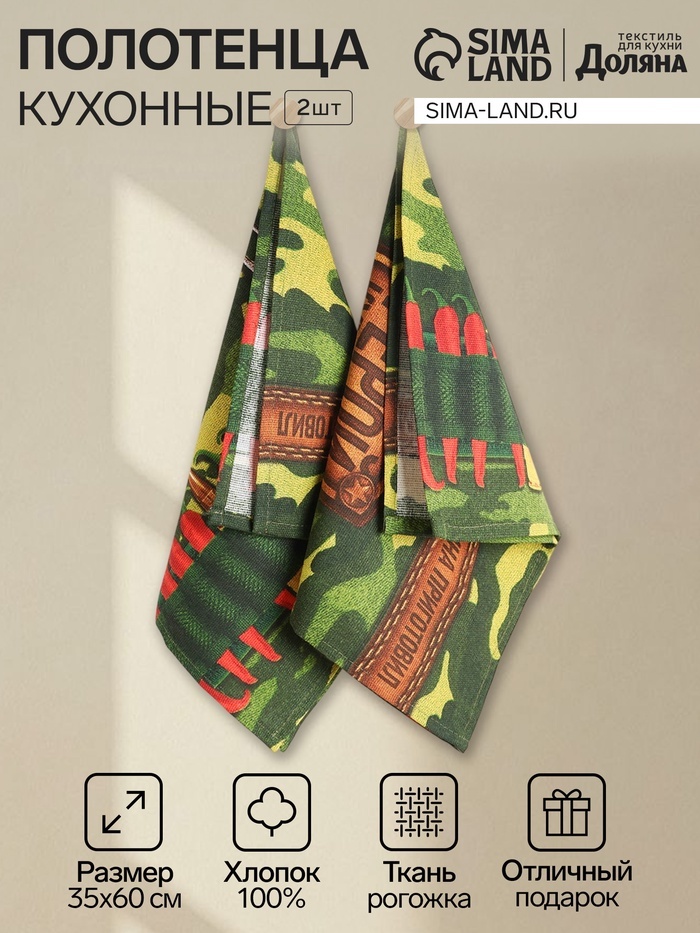 Набор кухонных полотенец «Доляна. Генерал кухни», 35?60 см-2 шт., 100% хлопок, рогожка 160 г/м?Набор кухонных полотенец «Доляна. Генерал кухни», 35?60 см-2 шт., 100% хлопок, рогожка 160 г/м?Набор кухонных полотенец «Доляна. Генерал кухни», 35?60 см-2 шт., 100% хлопок, рогожка 160 г/м?