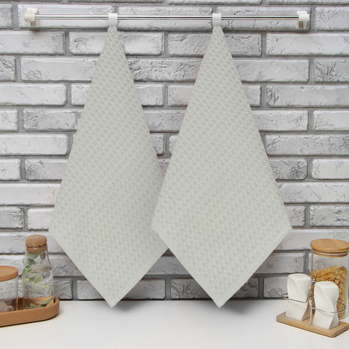 Набор кухонных полотенец «Доляна» Monochrome, 2 шт., серые, однотонные, 35?60 см