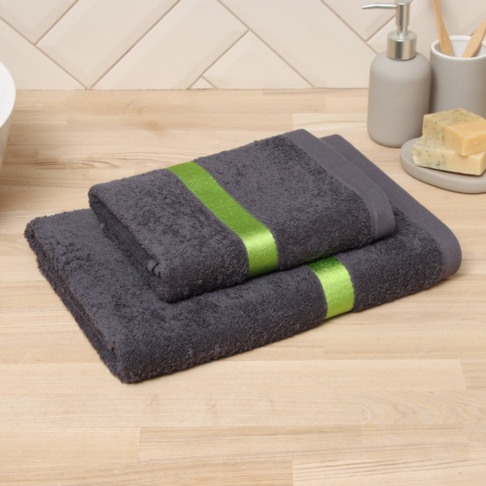 Полотенце махровое Love Life «Самум», 50?90 см, хлопок 100%, тёмно-серое, зелёное