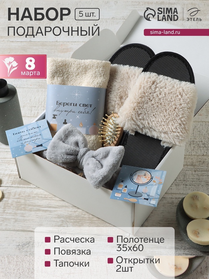 Набор подарочный «Этель» Love yourself, полотенце, тапочки, повязка на голову Вопросы по товару