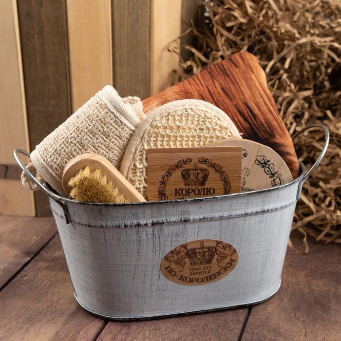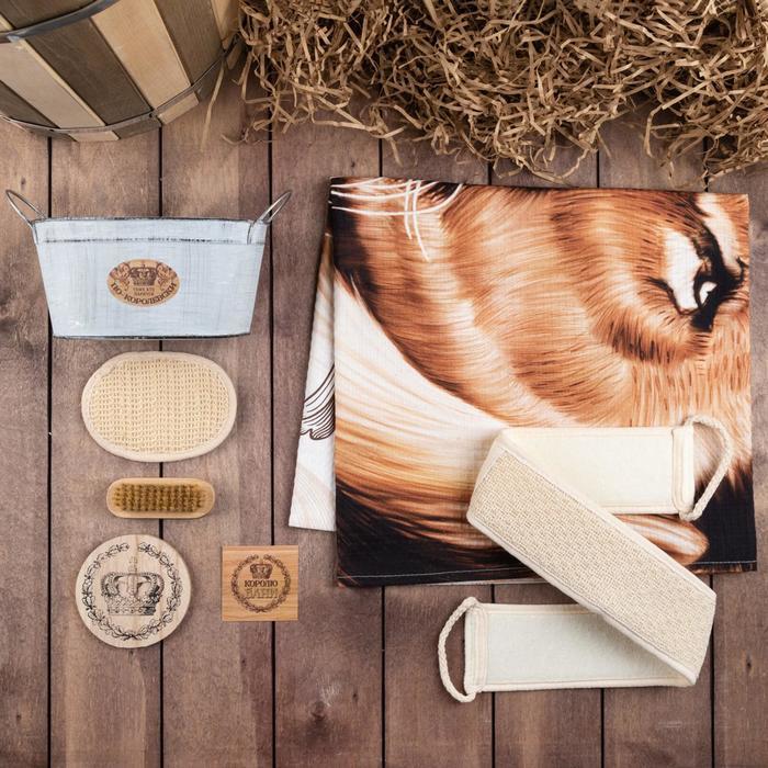 Набор подарочный «Этель. Король бани», 5 предметов, полотенце, мочалка, щёточка