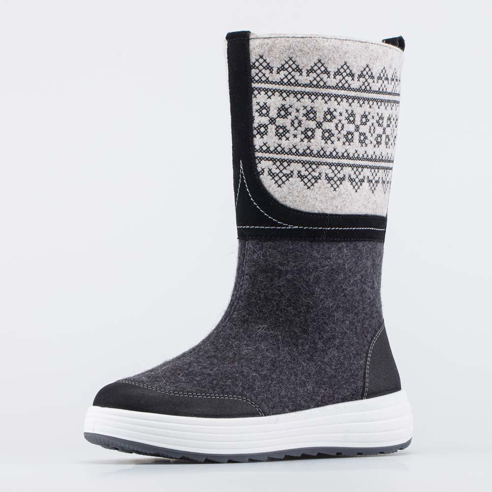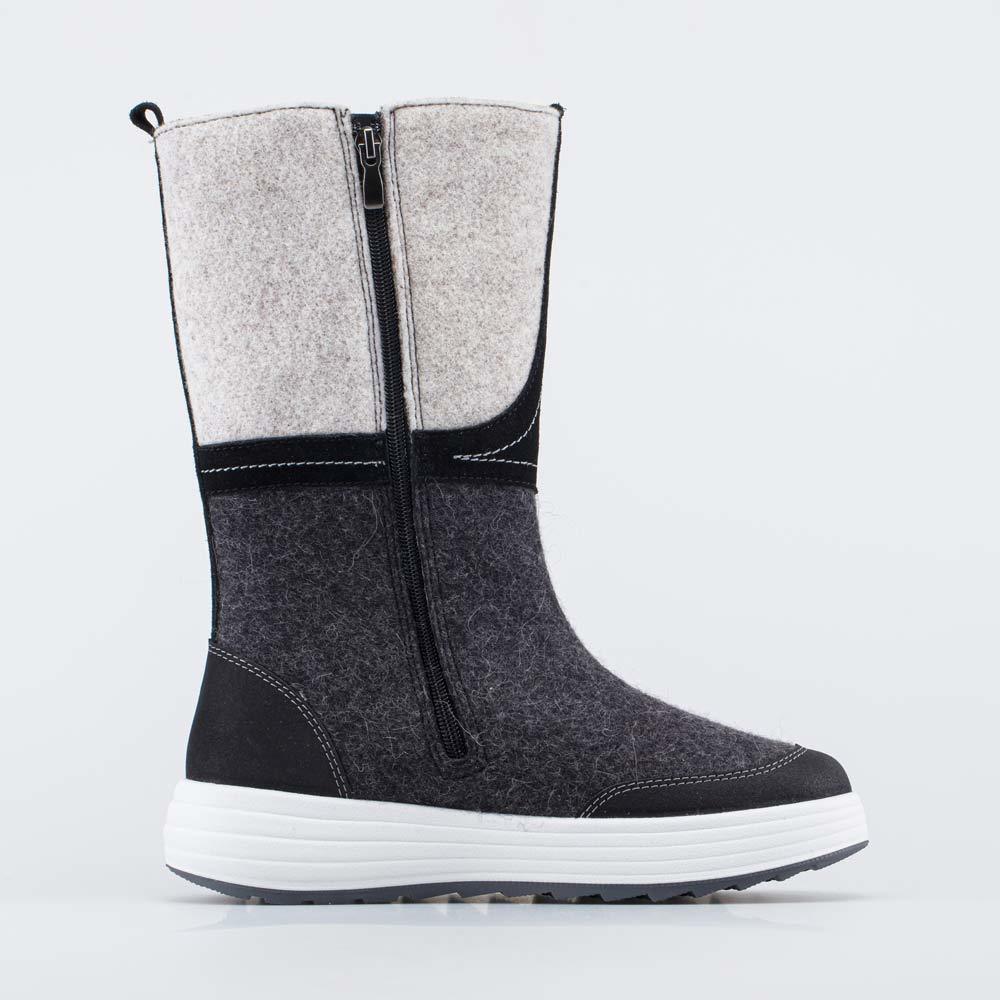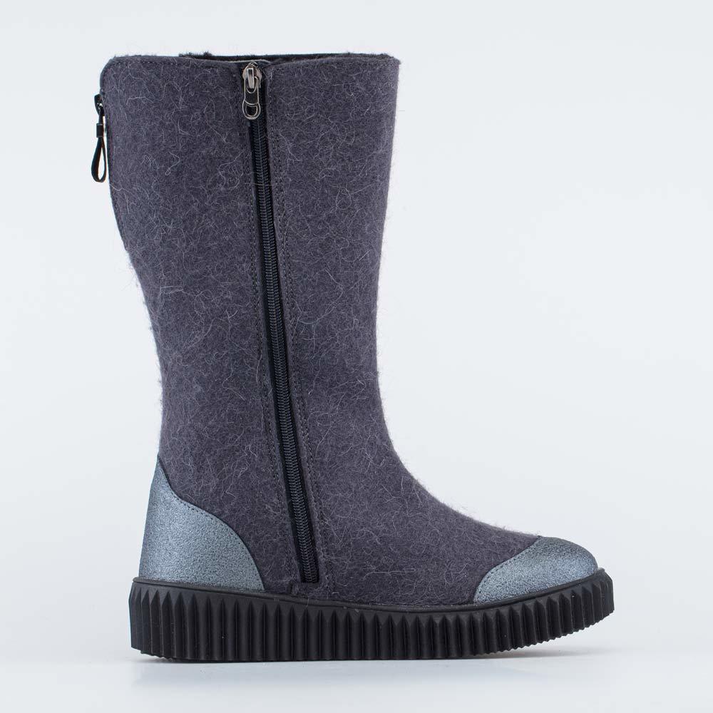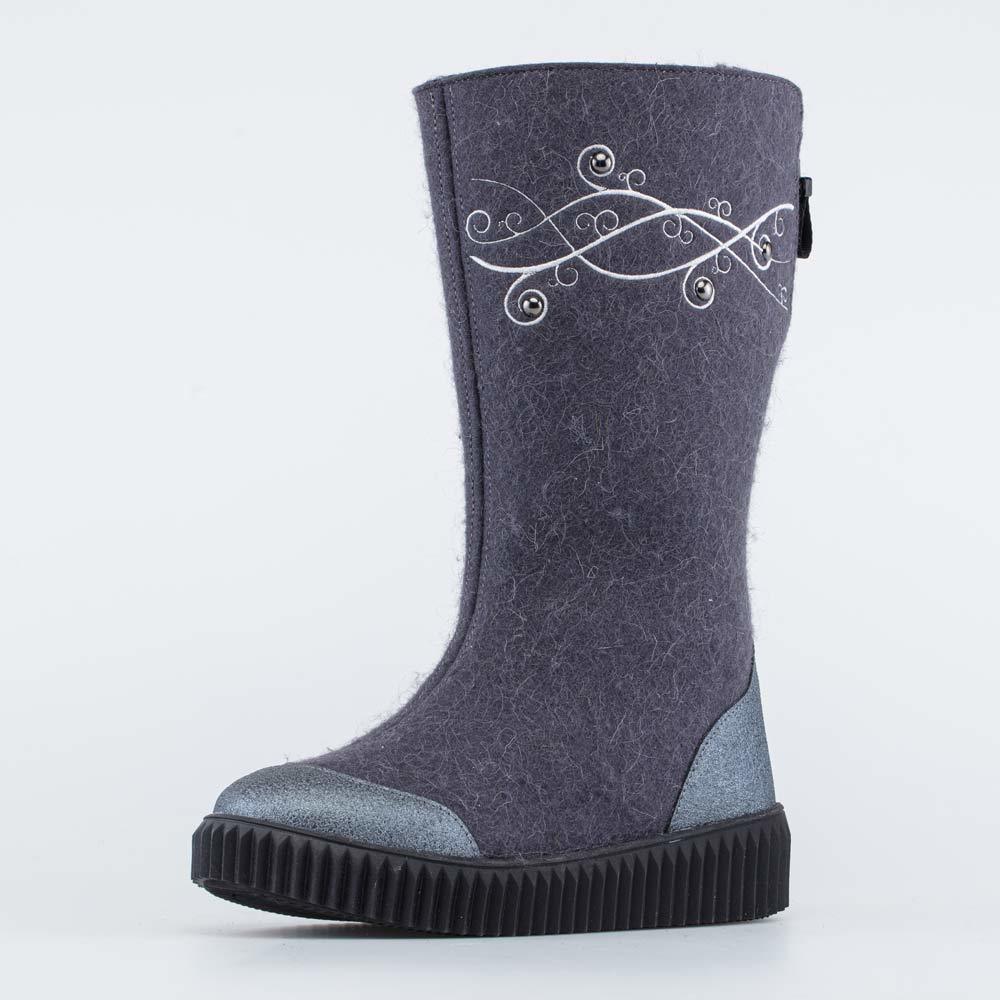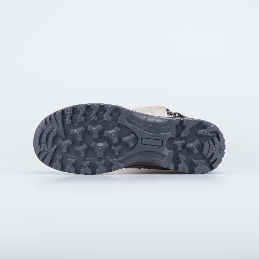Описание Описание модели Высокие серые женские валенки на подошве и на молнии украшены узором и имеют дополнительную молнию вверху голенища, которая позволяет регулировать его обхват. Такая модель хор... Показать описаниеошо садится как на тонкие колготки, так и на утепленные штаны. Валенки выполнены из плотного натурального войлока (100% овечья шерсть), который обладает водоотталкивающими свойствами, дышит и создаёт приятный микроклимат вокруг стопы. Носок и пятка защищены от влаги и реагентов кожаными накладками. Меховая подкладка обеспечивает дополнительную теплоизоляцию и комфорт даже в сильные морозы. Войлочная стелька снабжена петелькой, чтобы легко вынимать ее для проветривания. Морозостойкая подошва из ТЭП (термоэластопласта) также обеспечивает защиту от холода и показывает наивысшую устойчивость на зимних поверхностях. Обувь анатомически правильная: обеспечивает комфортную поддержку стоп в течение всего дня. Сделано в России, ТМ Гуслицкие.