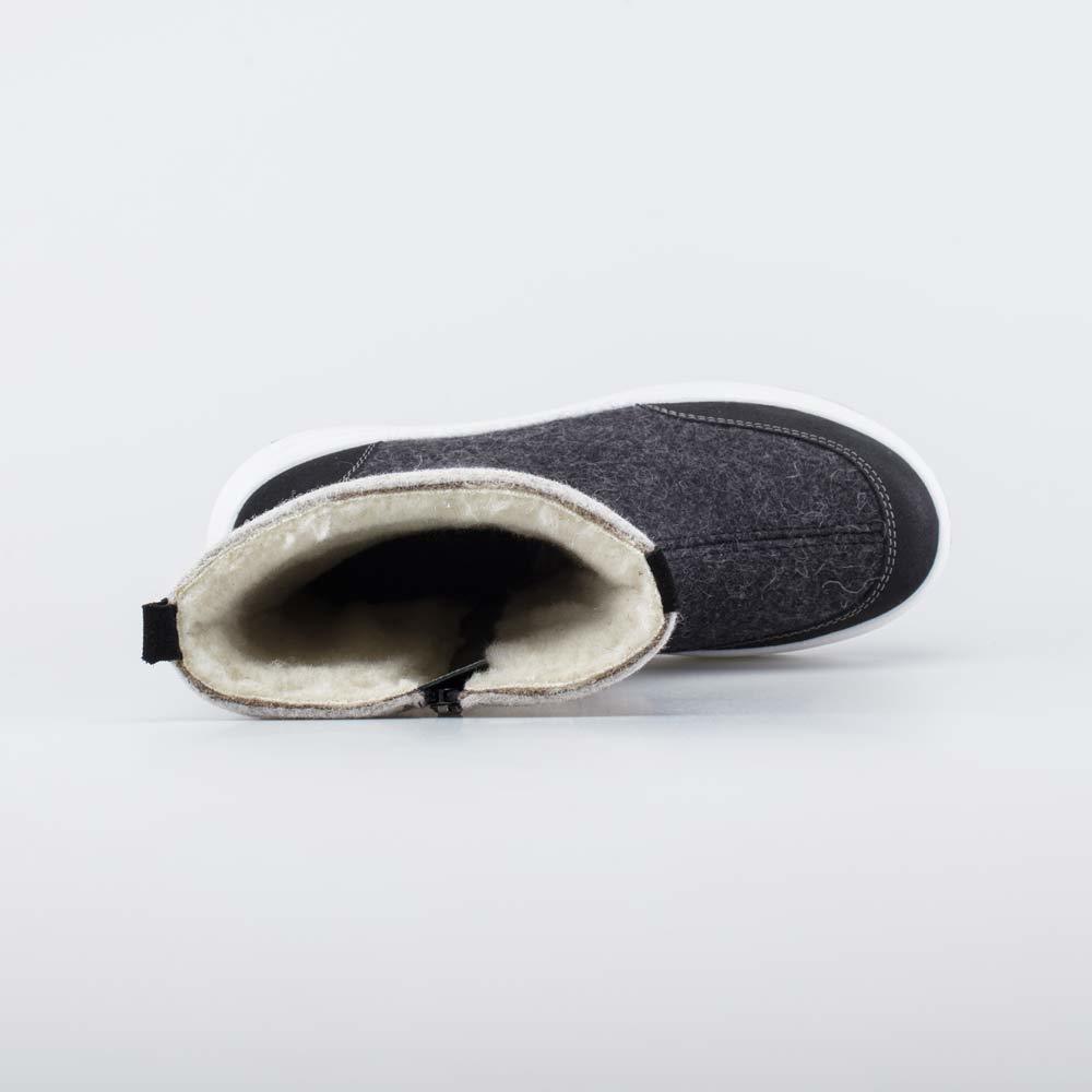 Описание Описание модели Войлочные полуботинки для мужчин укороченного фасона обеспечивают сухое тепло в сильные морозы до - 30, помогают сохранить комфорт при сырой и влажной погоде до +5. Верх и сте... Показать описаниелька из натурального войлока (100% овечья шерсть), подкладка из шерстяного меха (натуральные шерстяные волокна вплетены в текстильную основу). Войлок плотный, с водоотталкивающими свойствами, дышит и создаёт при этом приятный климат вокруг стопы на улице и в помещении. Носочная и пяточная части защищены кожаными накладками с полиуретановым покрытием. Они предохраняют войлок от влаги и реагентов. Молния позволяет быстро обуваться и разуваться. Кедовая подошва литьевого метода крепления из специального зимнего полиуретана снабжена резиновой накладкой на ходовой поверхности, предотвращающей скольжение обуви. Сделано в России, ТМ Гуслицкие.