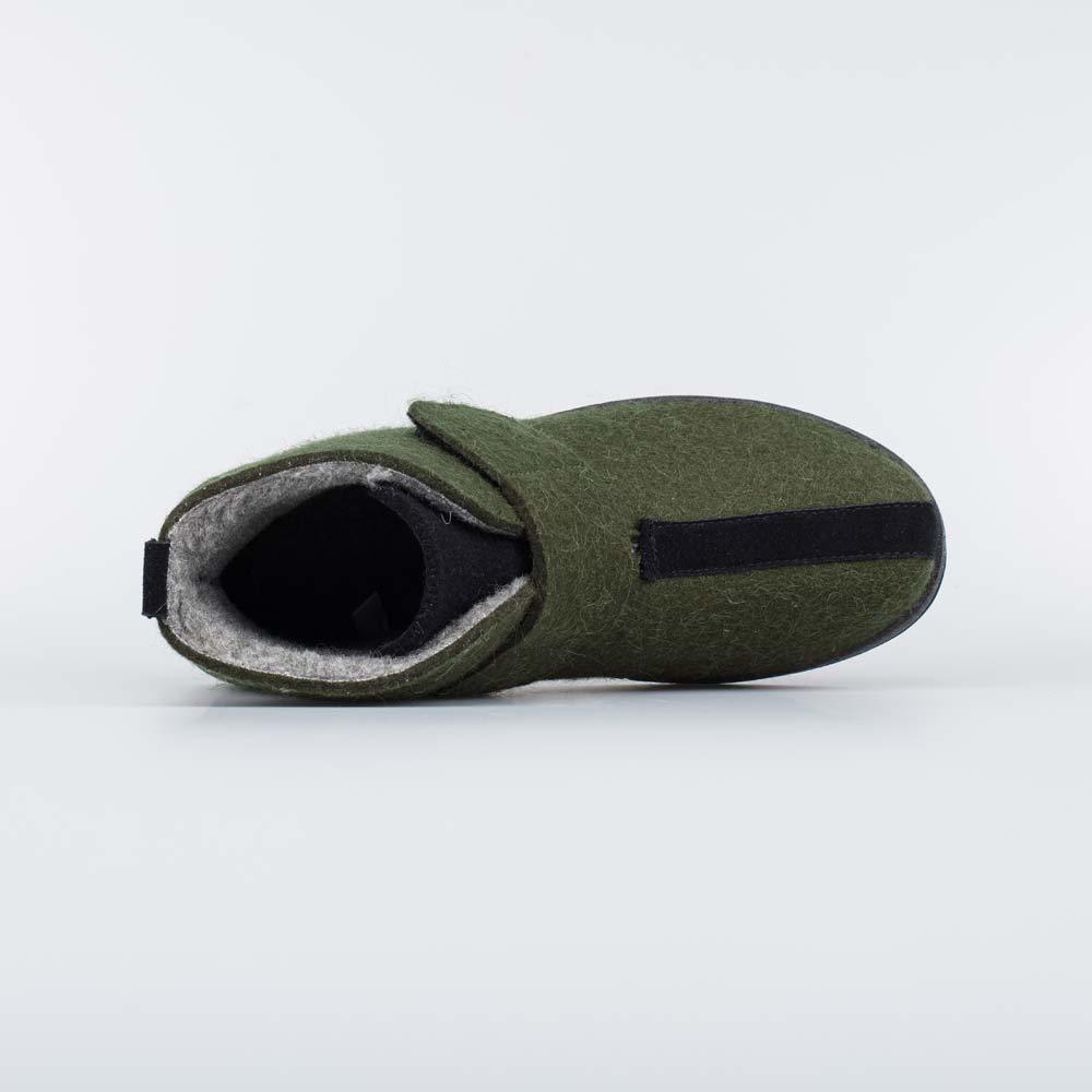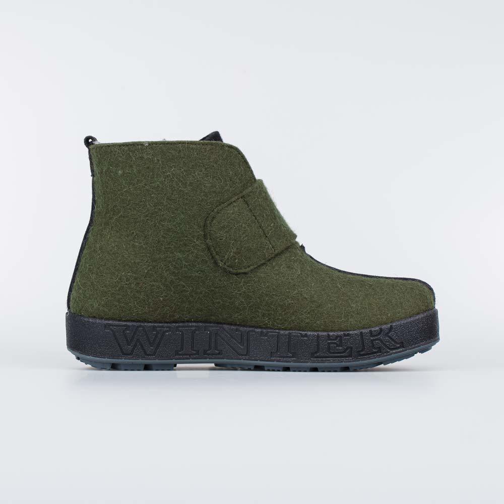Описание Описание модели Валенки, выполненные в виде войлочных ботинок, обеспечивают тепло в мороз и сохраняют комфорт при влажной погоде до +5 градусов. Оливковый цвет делает модель стильным дополнен... Показать описаниеием современного мужского образа. Укороченные валенки имеют верх из плотного и дышащего натурального войлока. Он создаёт благоприятный микроклимат внутри обуви, дарит стопам сухое тепло и оказывает массажный эффект. Войлочная стелька снабжена петелькой, чтобы легко вынимать ее для проветривания. Отсутствие меховой подкладки делает модель особенно подходящей для тех, кто часто заходит с улицы в помещение или передвигается на автомобиле. Валенки на липучках надежно фиксируются на ногах, их удобно обувать и снимать. Легкая подошва из ЭВА обеспечивает амортизацию. Такие валенки отлично подходят для ежедневной носки в реалиях активного городского ритма. Модель анатомически правильная: обеспечивает комфортную поддержку стоп в течение длительного времени. Сделано в России, ТМ Гуслицкие.
