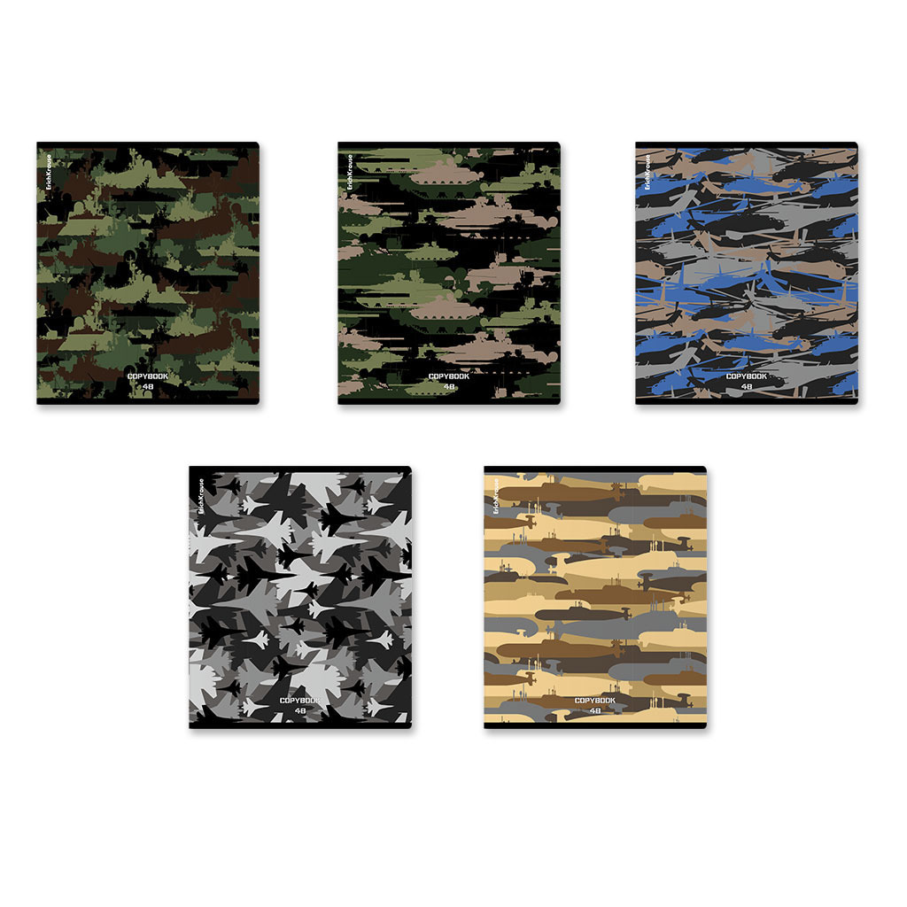 Тетрадь общая ученическая ErichKrause Military, 48 листов, клетка, матовая ламинация+выборочный УФ-лак_MIX-PACK Вопросы по товару